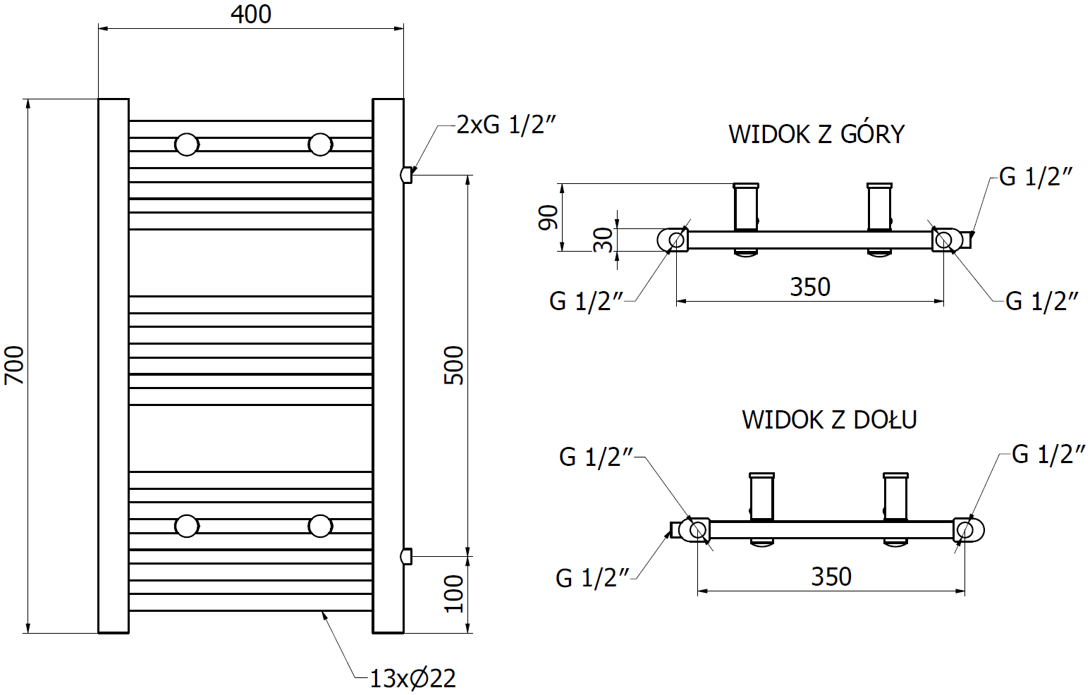 - 4xG ½″ zgoraj in spodaj na desni ali levi strani
