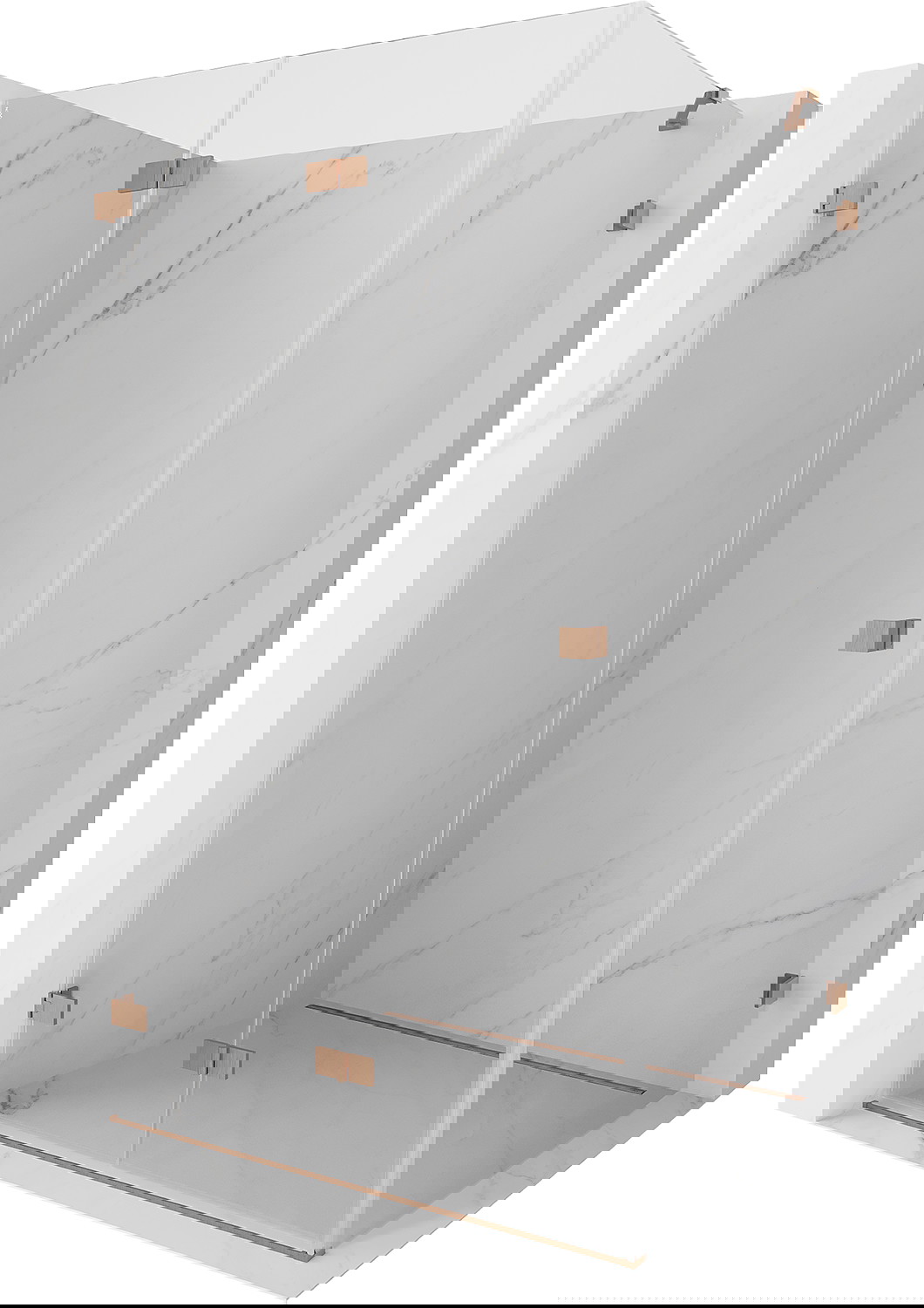 Sponke in tečaji so izdelani iz zelo trpežne medenine in dodatno ustvarjajo poravnano površino stekla. To je odlična izbira, ki združuje eleganco, vzdržljivost in sodoben dizajn. Zaradi takšnih rešitev prha pridobi na estetiki, hkrati pa olajšajo vzdrževanje čistoče.