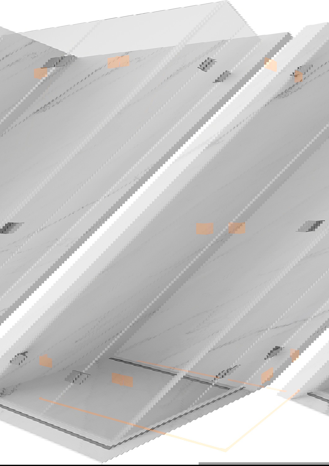Sponke in tečaji so izdelani iz zelo trpežne medenine in dodatno ustvarjajo poravnano površino stekla. To je odlična izbira, ki združuje eleganco, vzdržljivost in sodoben dizajn. Zaradi takšnih rešitev prha pridobi na estetiki, hkrati pa olajšajo vzdrževanje čistoče.