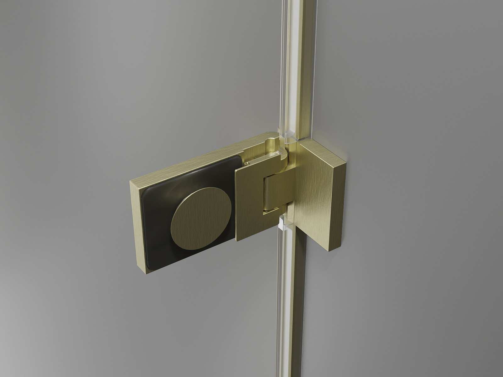 Medeninaste kljuke in tečaji poravnani s stekleno ploščo