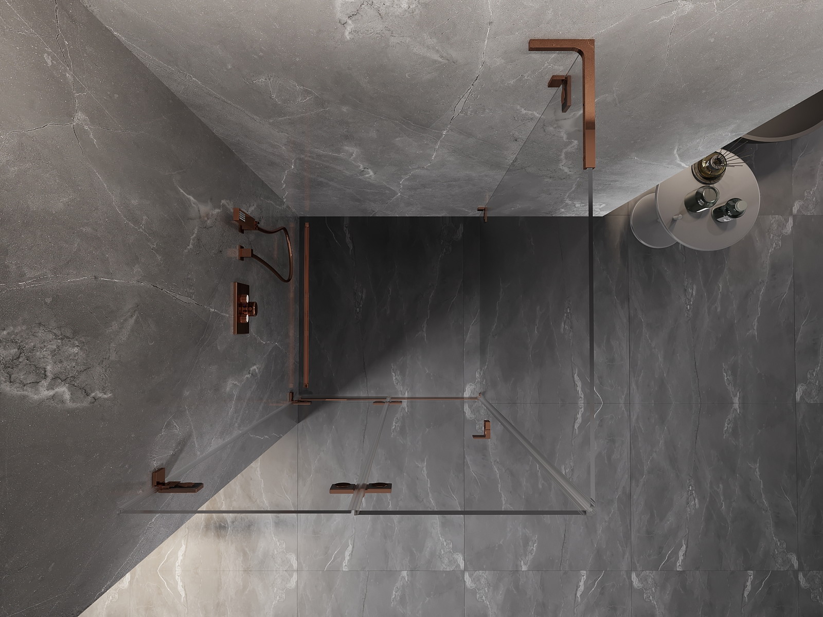 Mexen Lunar-F L zložljiva tuš kabina levo 80 x 80 cm, prosojna, rožnato zlato - 836L-080-080-60-00-L