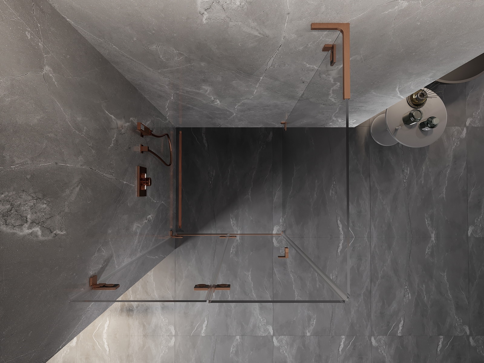 Mexen Lunar-F L zložljiva tuš kabina leva 80 x 80 cm, prozorna, brušeni baker - 836L-080-080-65-00-L