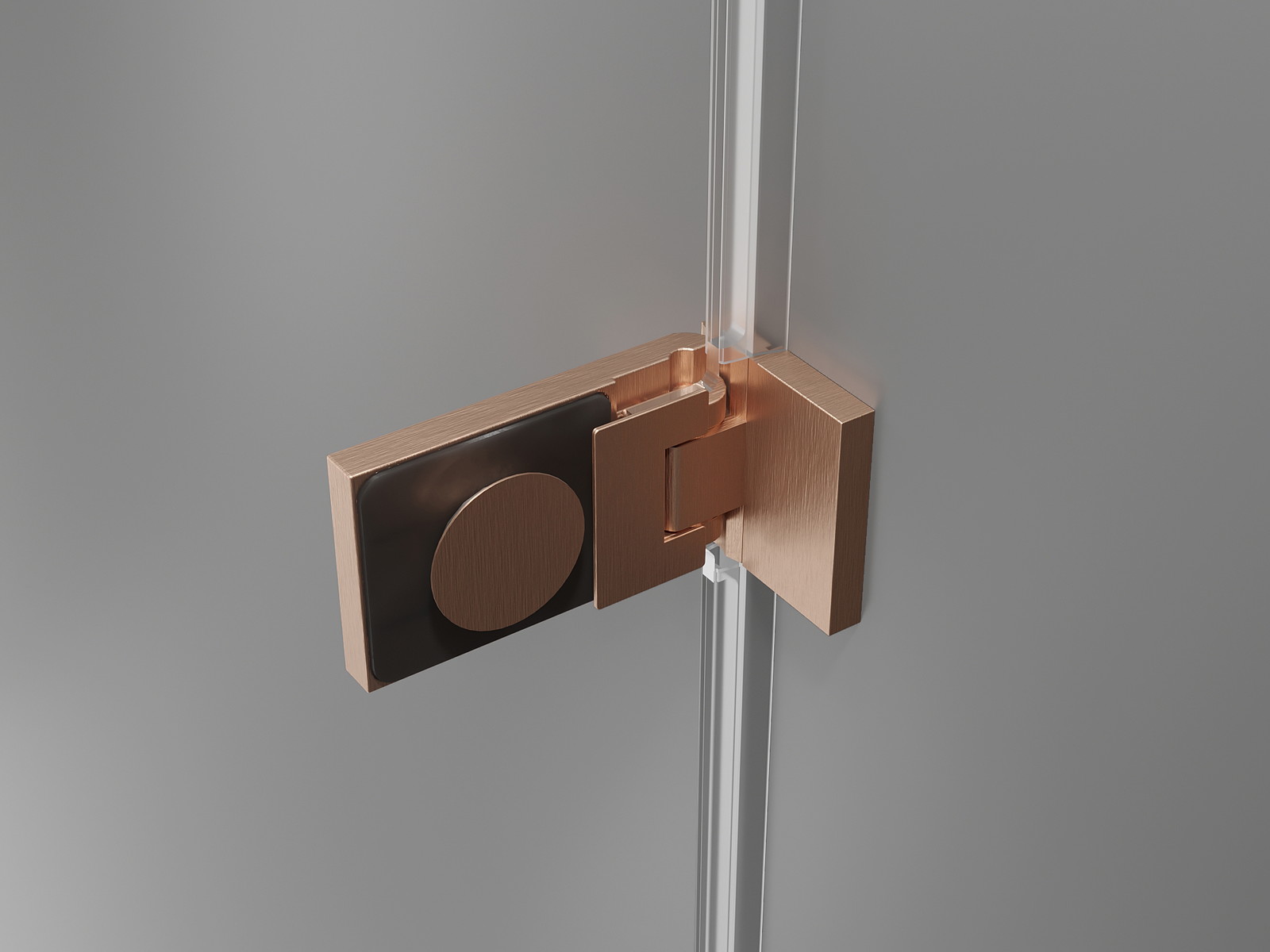 Medeninaste sponke in tečaji poravnani s stekleno površino