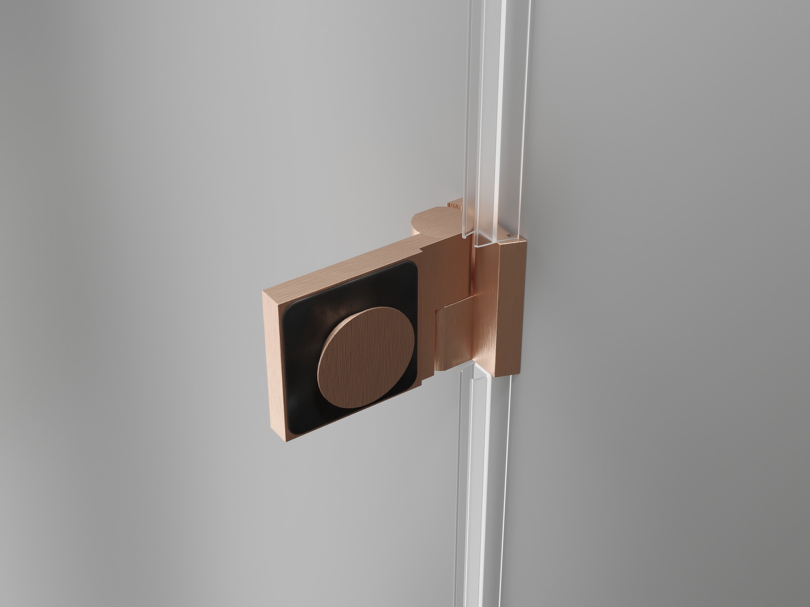 Mexen Lunar-B Duo nihajna tuš kabina 90 x 75 cm, prozorna, brušen baker - 832-090L-075P-65-00