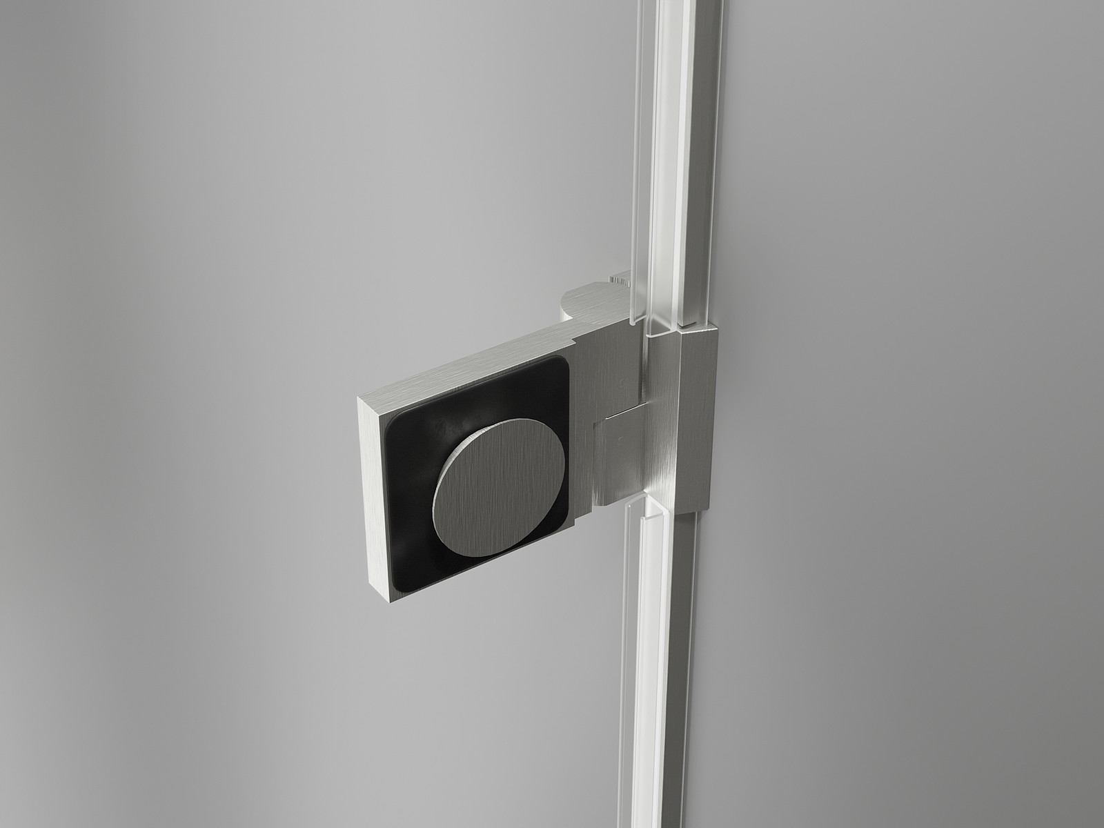 Priročen in udoben ročaj je izdelan iz trpežnega in odpornega kovine. Modna oblika v kombinaciji z zaključkom, ki ustreza barvi profilov, daje celoti sodoben in stilski videz, poudarjajoč estetiko vsake kopalnice.