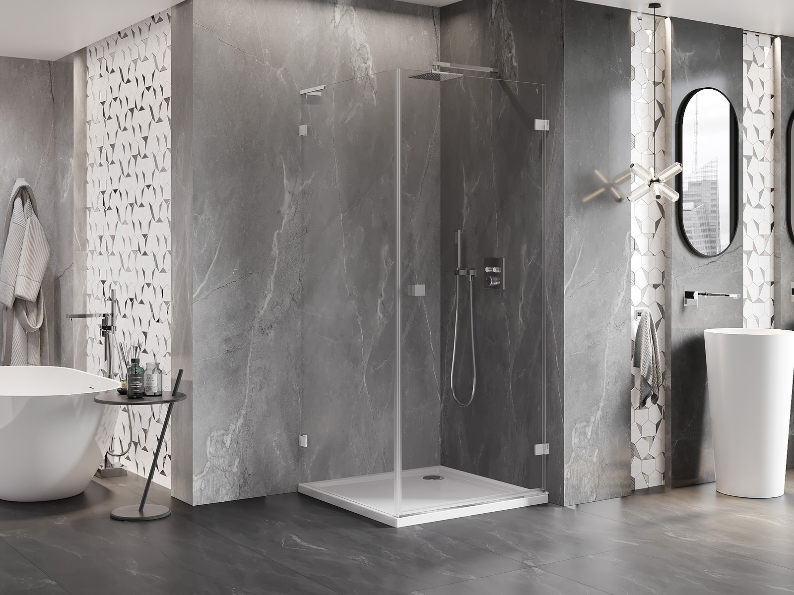 Mexen Lunar-B L nihajna desna tuš kabina 100 x 100 cm, prosojna, krom - 832L-100-100-01-00-P