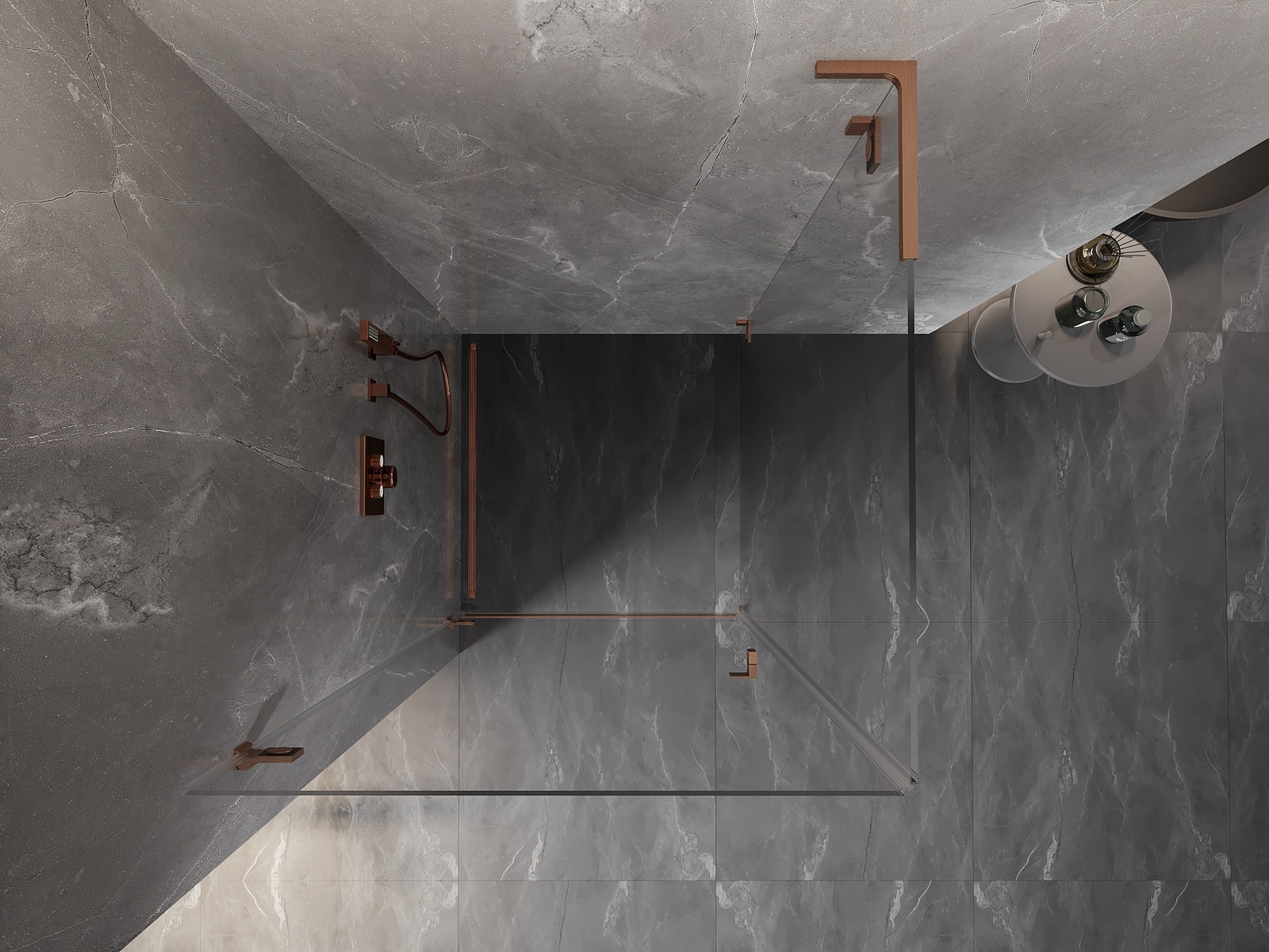 Mexen Lunar-B L nagibna kabina za prhanje levi 90 x 90 cm, prozorna, brušen baker - 832L-090-090-65-00-L
