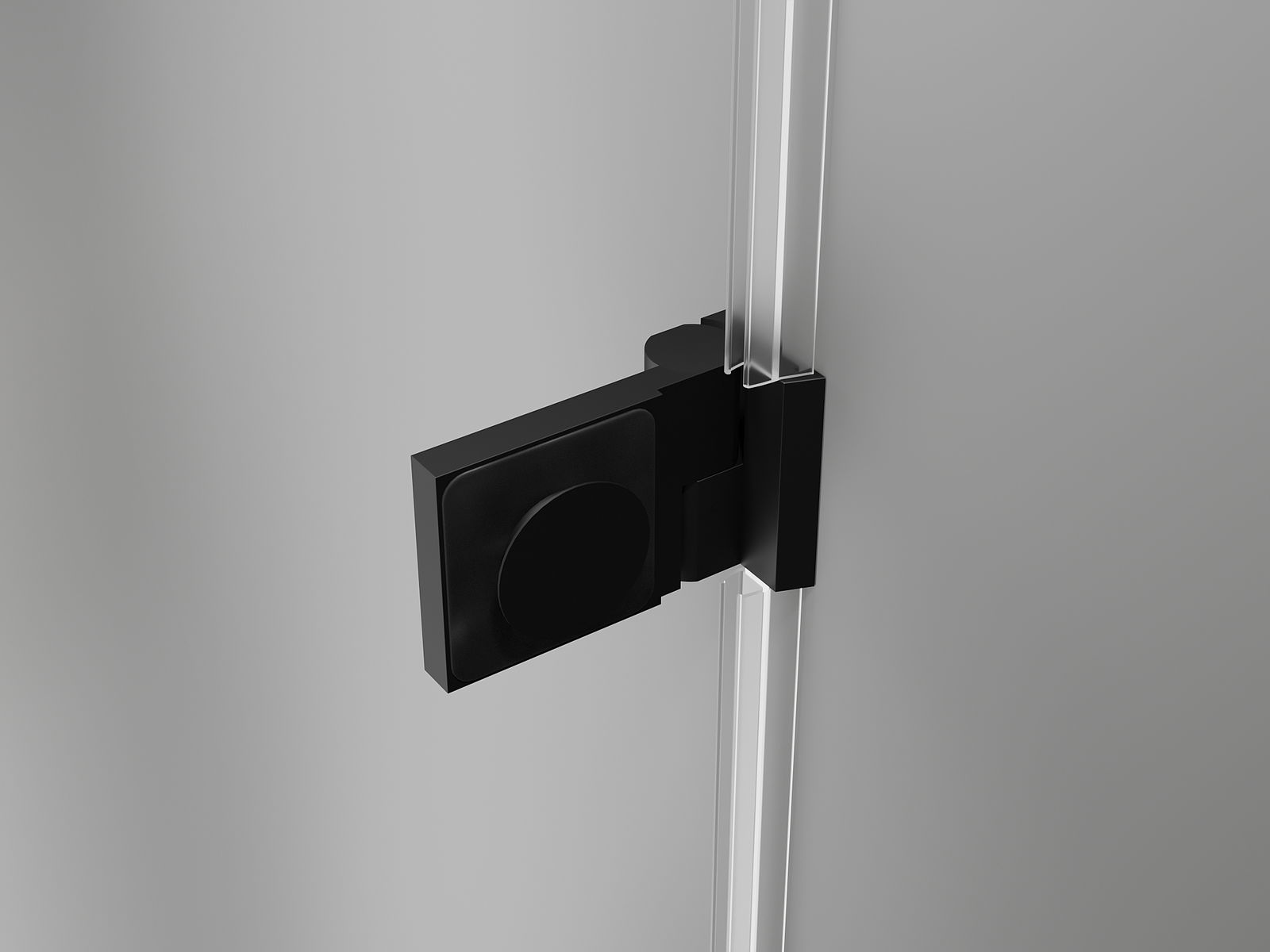 Priročen in udoben ročaj je izdelan iz trpežnega in odpornega kovine. Modna oblika v kombinaciji z zaključkom, ki ustreza barvi profilov, daje celoti sodoben in stilski videz, poudarjajoč estetiko vsake kopalnice.