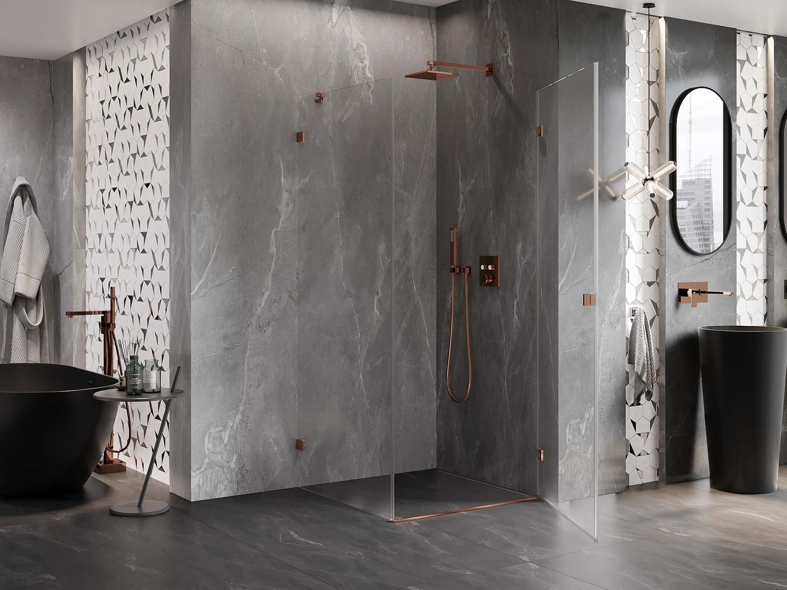 Mexen Lunar-B L prha kabina je idealna rešitev za tiste, ki cenijo sodoben dizajn in funkcionalnost. Kabina velikosti 90x90 cm in višine 200 cm se ponaša z elegantnim zaključkom v rožnatem zlatu in prozornim kaljenim steklom, kar zagotavlja varnost. Aluminijasti profil in jekleni kotni stabilizator ter medeninaste kljuke zagotavljajo trpežnost. Nihajna vrata z mehanizmom dvigovanja in spuščanja olajšajo uporabo, premaz za lažje čiščenje pa omogoča udobje pri vzdrževanju čistoče. Kabina ponuja dve možnosti montaže, s prilagoditvijo širine, kar omogoča prilagoditev vsaki kopalnici.