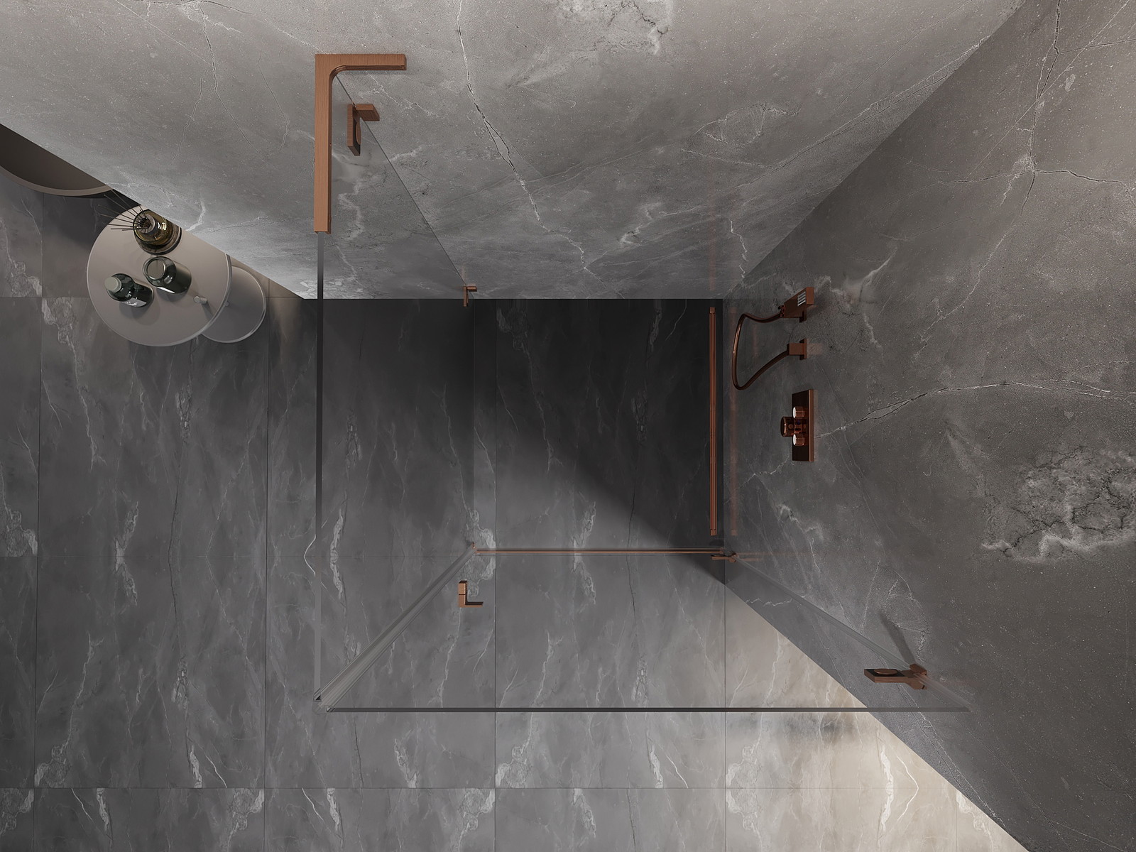 Mexen Lunar-B L prhašna desna vrata tuš kabine 100 x 100 cm, prozorna, brušena medenina - 832L-100-100-65-00-P