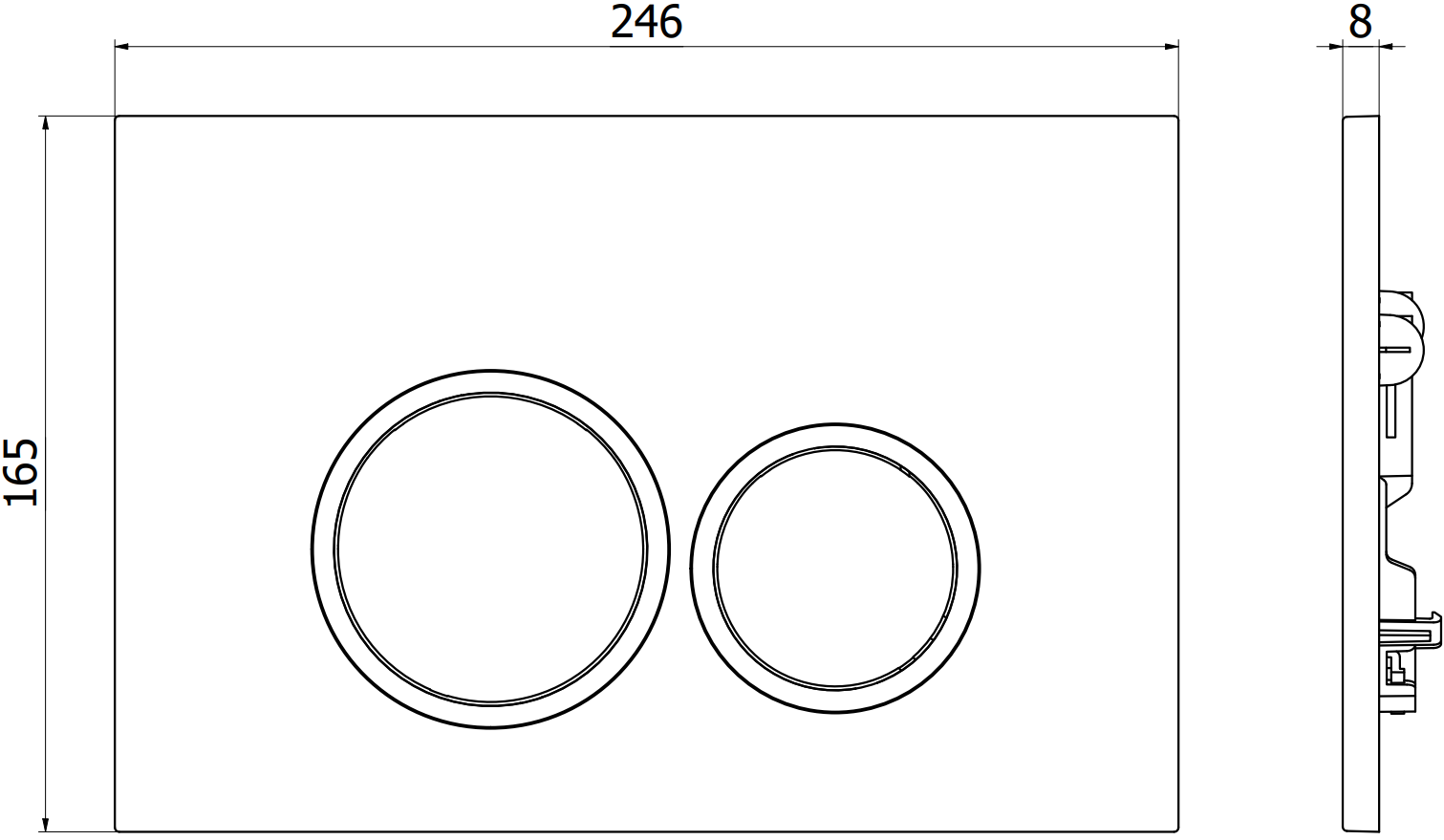 Gumb je namenjen za nadometne okvirje, kjer je mesto montaže na sprednji strani konstrukcije. Takšna postavitev omogoča enostaven dostop in udobno upravljanje splakovanja.