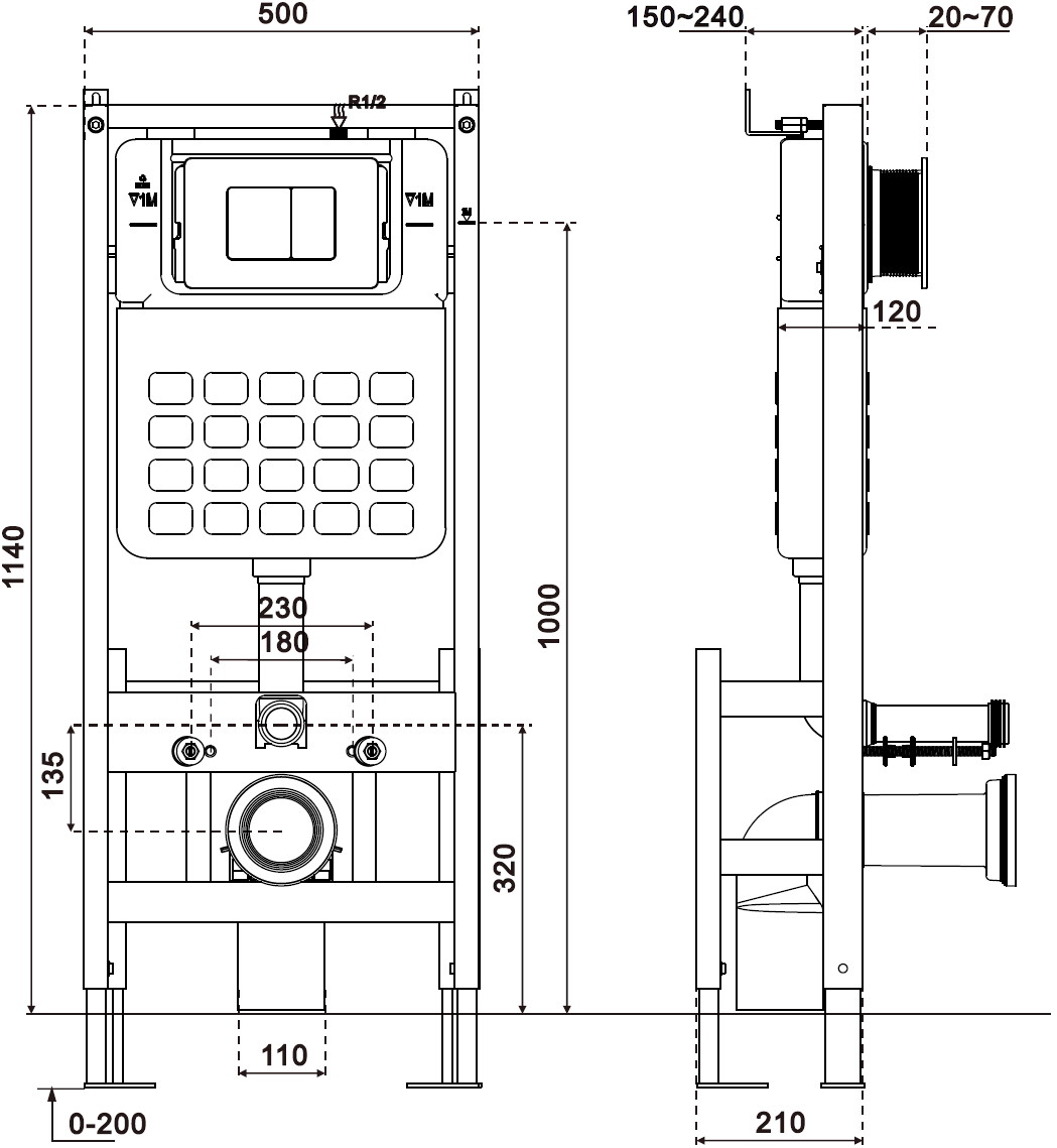 Mexen Tex Air F je prostostoječi podometni okvir s funkcijo pnevmatskega splakovanja. Zaradi višine 114 cm, širine 50 cm in debeline 12 cm je idealen za montažo v polnih in mavčnih stenah. Ponuja kompatibilnost z visečimi školjkami z razmikom lukenj 18 cm ali 23 cm. Ima nastavljive, cinkane noge in nosilce, kar olajša montažo na podlago debeline 0-20 cm. Rezervoar z zaščito proti kondenzaciji zagotavlja trajnost, možnost regulacije količine splakovalne vode (6/9 L, 4,5/3 L) pa omogoča prihranek. Idealen za dopolnitev s tipkami Mexen iz serije Tex.