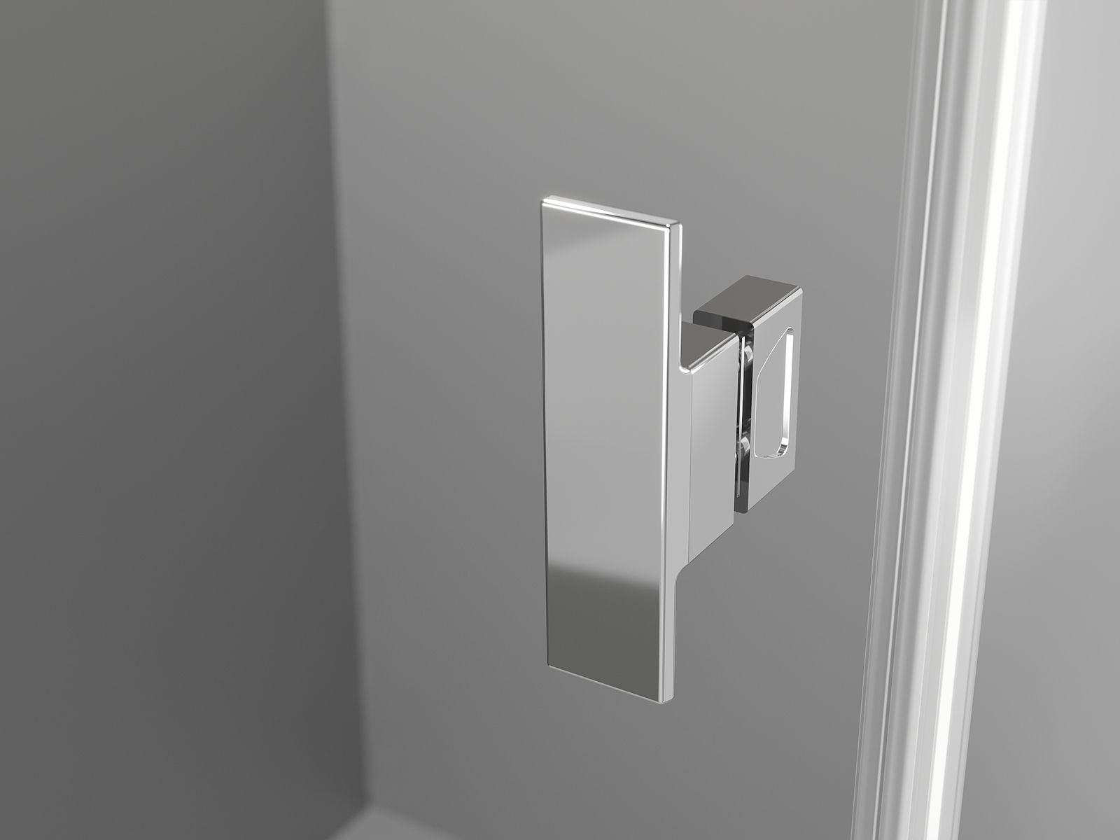 Priročen in udoben ročaj je izdelan iz trpežnega in odpornega kovine. Modna oblika v kombinaciji z zaključkom, ki ustreza barvi profilov, daje celoti sodoben in stilski videz, poudarjajoč estetiko vsake kopalnice.