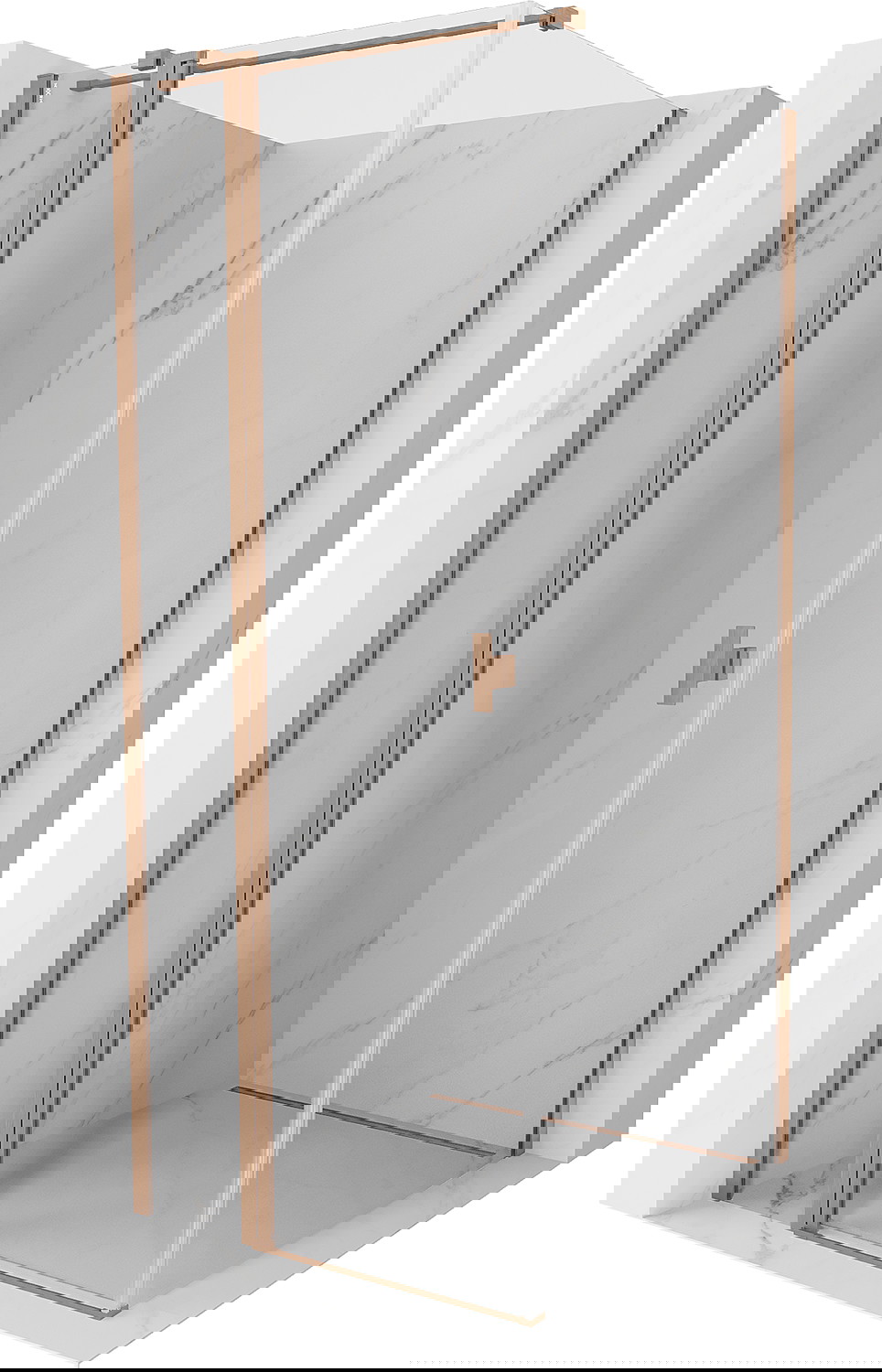 Priročen in udoben ročaj je izdelan iz trpežnega in odpornega kovine. Modna oblika v kombinaciji z zaključkom, ki ustreza barvi profilov, daje celoti sodoben in stilski videz, poudarjajoč estetiko vsake kopalnice.