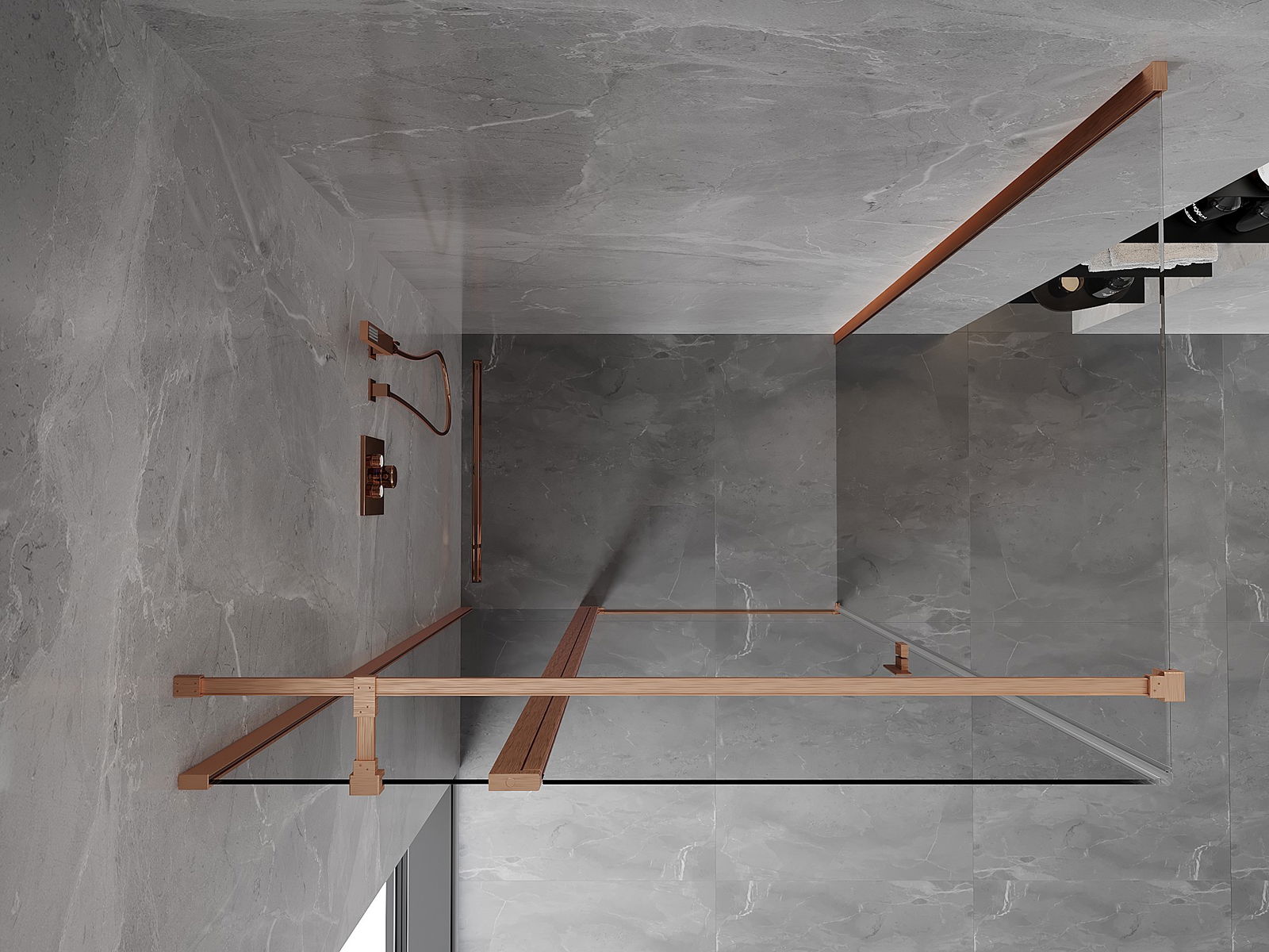 Mexen Mist T nagibna tuš kabina 85 x 80 cm, prosojna, brušeni baker - 8A4T-085-080-65-00