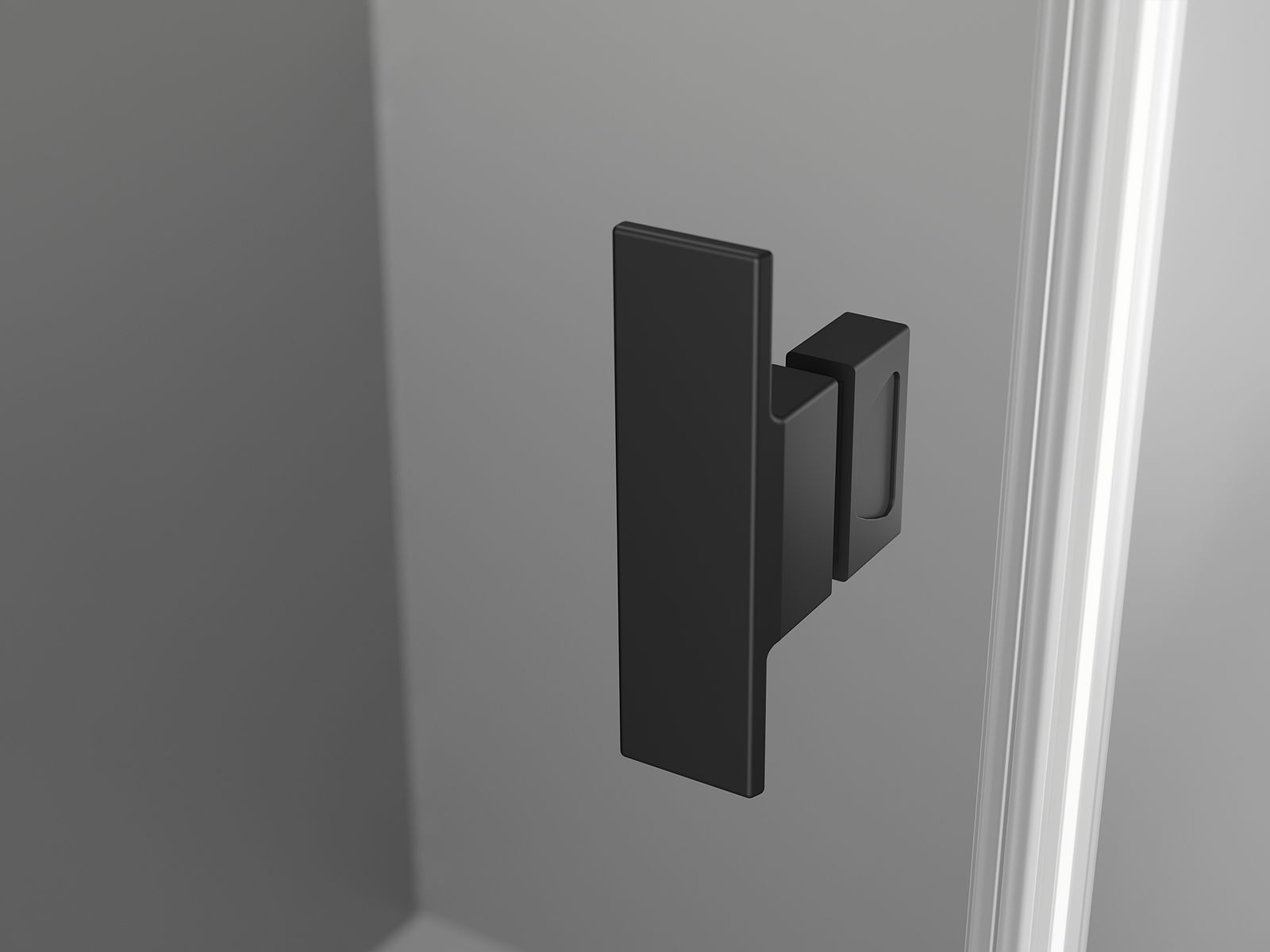 Priročen in udoben ročaj je izdelan iz trpežnega in odpornega kovine. Modna oblika v kombinaciji z zaključkom, ki ustreza barvi profilov, daje celoti sodoben in stilski videz, poudarjajoč estetiko vsake kopalnice.