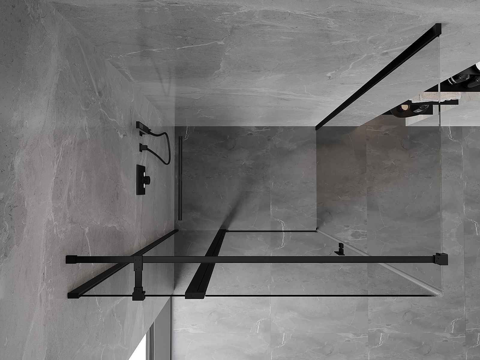 Priročen in udoben ročaj je izdelan iz trpežnega in odpornega kovine. Modna oblika v kombinaciji z zaključkom, ki ustreza barvi profilov, daje celoti sodoben in stilski videz, poudarjajoč estetiko vsake kopalnice.
