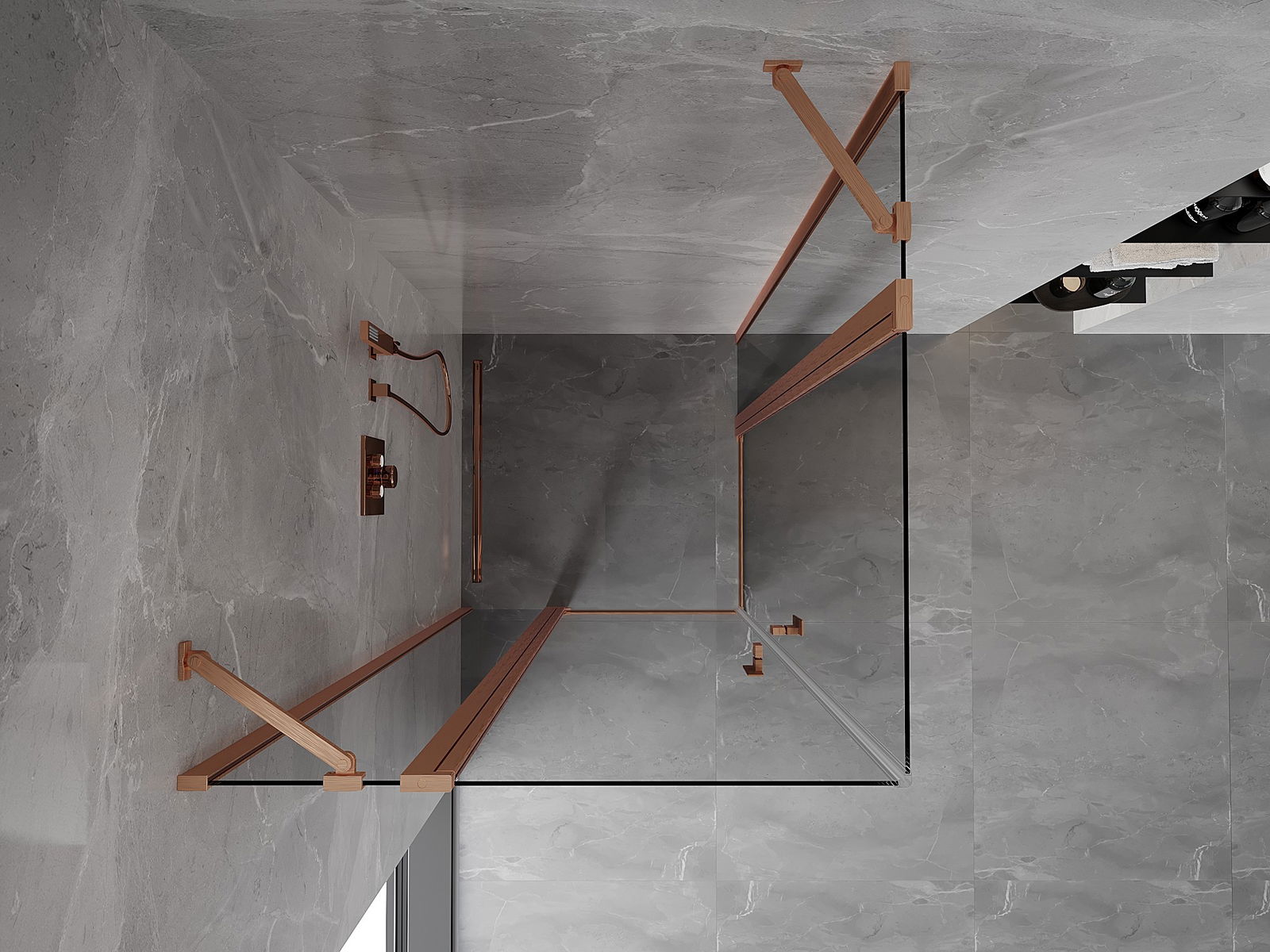 Mexen Mist Duo pregibna tuš kabina 70 x 70 cm, prozorna, brušen baker - 8A4-070-070-65-00