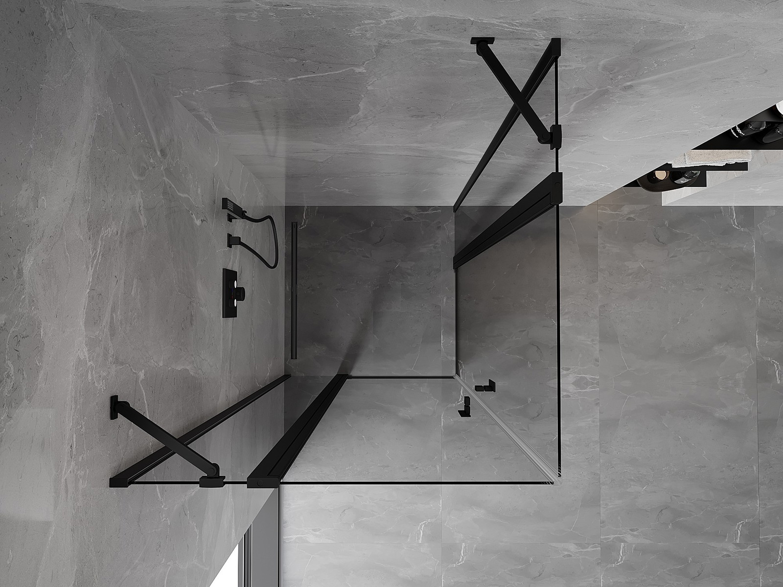 Mexen Mist Duo kabina prha kabina 70 x 70 cm, prozorna, črna - 8A4-070-070-70-00