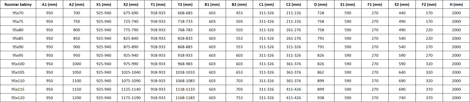 Tuš kabine, vrata in stene so standardno prilagojene za montažo na tuš kadi določenih dimenzij. Te dimenzije so navedene v imenu ali opisu izdelka. Vendar je treba upoštevati, da se dejanske mere elementov lahko nekoliko razlikujejo od nazivnih vrednosti. V primeru načrtovane montaže neposredno na tla je priporočljivo natančno preveriti zunanje mere in razporeditev elementov v skladu s tehnično risbo.