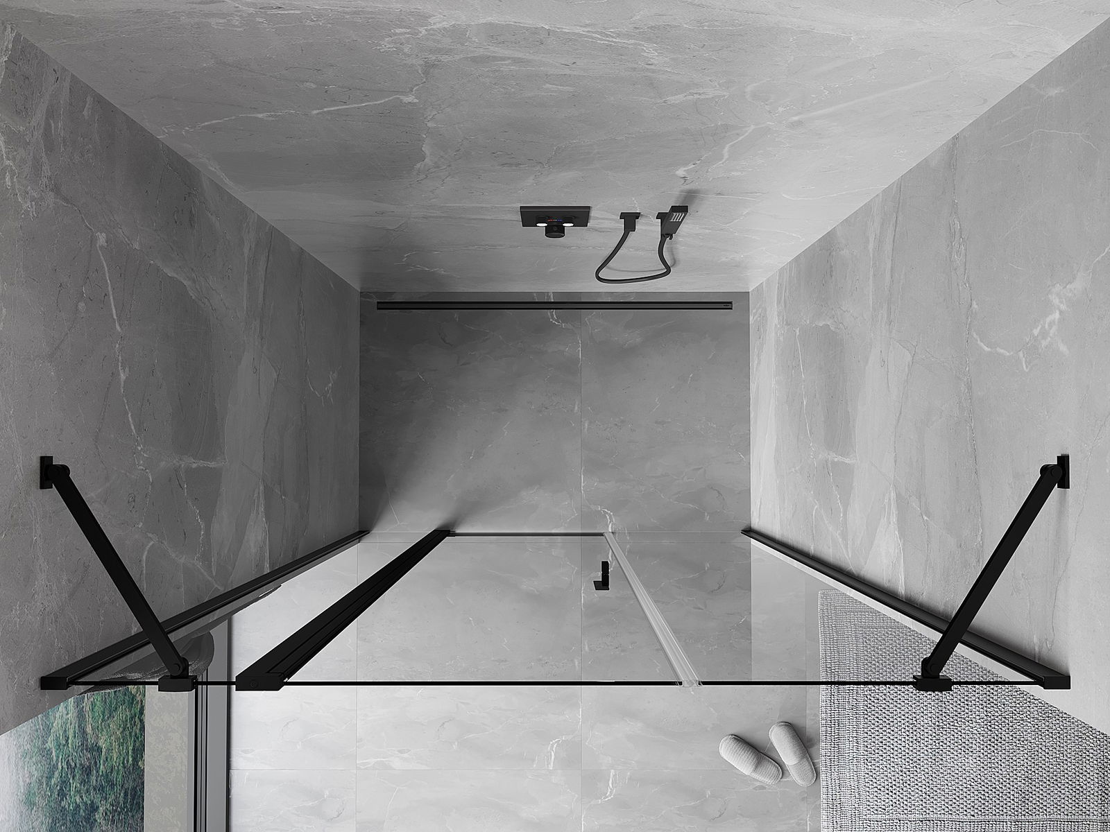 Priročen in udoben ročaj je izdelan iz trpežnega in odpornega kovine. Modna oblika v kombinaciji z zaključkom, ki ustreza barvi profilov, daje celoti sodoben in stilski videz, poudarjajoč estetiko vsake kopalnice.