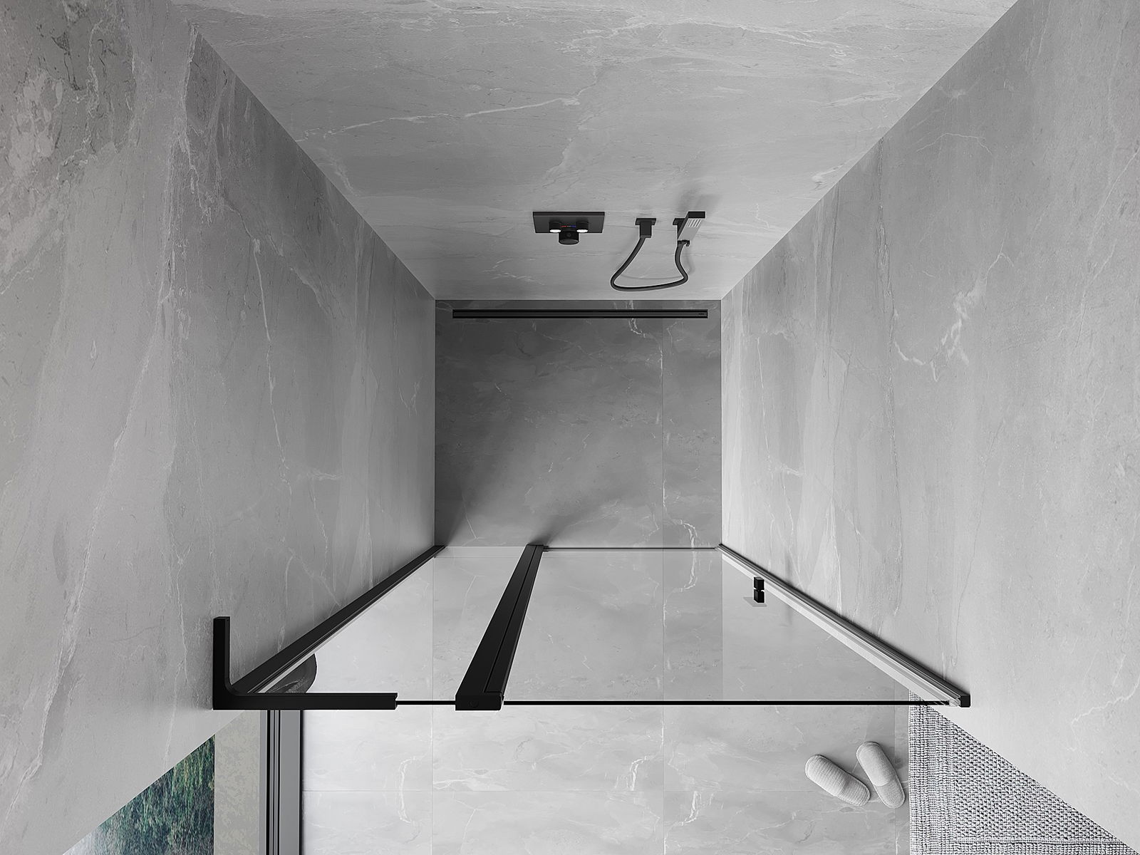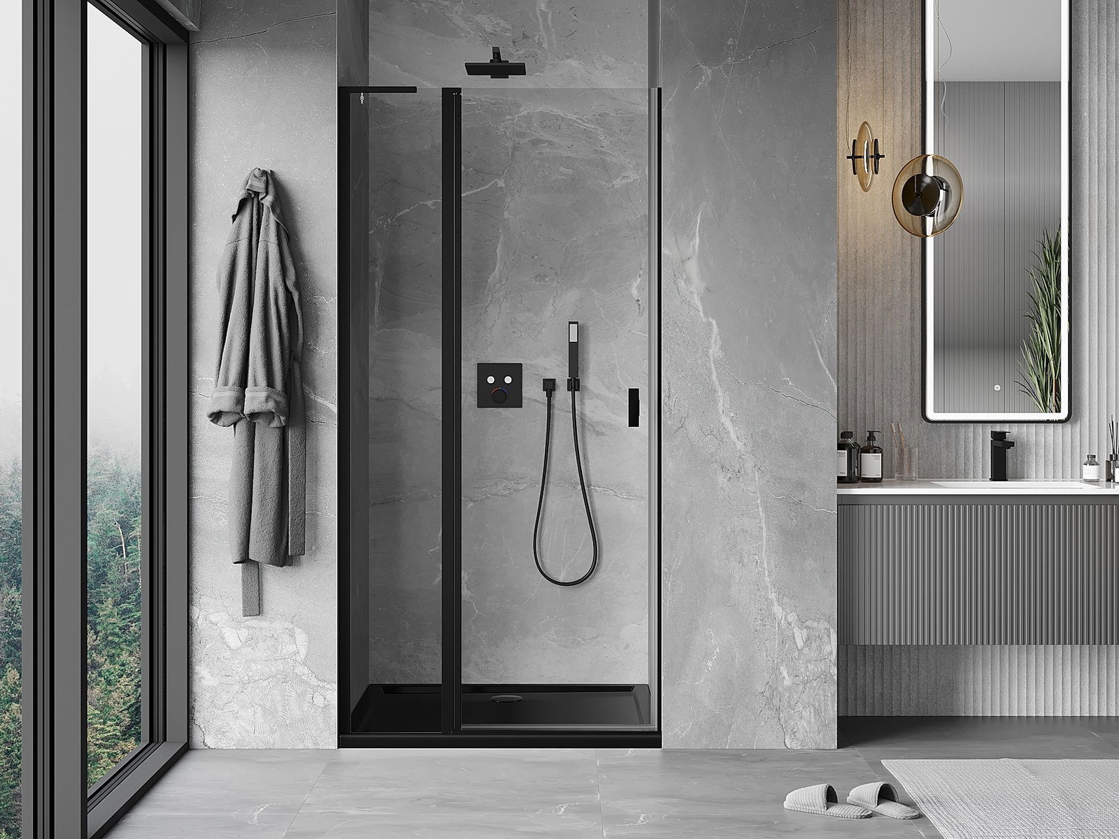 Mexen Mist L 110 cm nihajna pršna vrata, prozorna, črna - 8A4L-110-000-70-00
