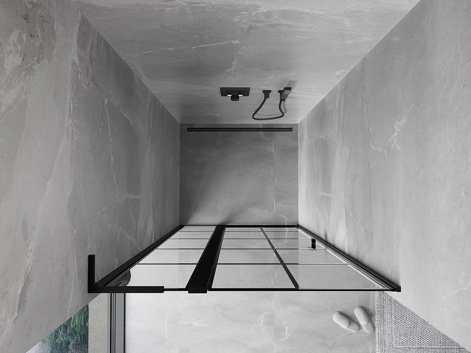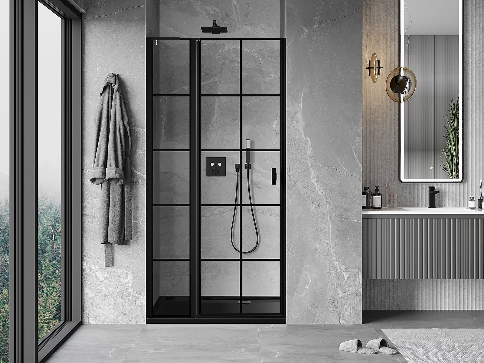 Mexen Mist L Leva nihajna pršna vrata 90 cm, črna rešetka, črna - 8A4L-090-000-70-77-L