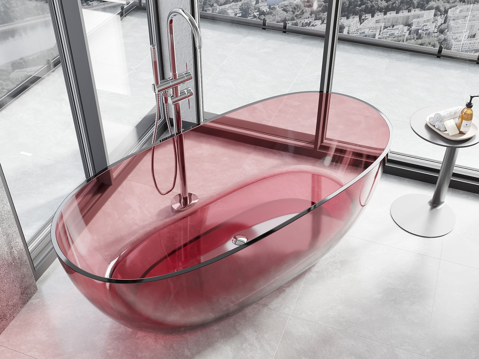 Je sodoben material, ki združuje eleganten videz z visoko trpežnostjo. Odporen je na mehanske poškodbe, enostaven za čiščenje in prijeten na dotik. Prosojna oblika in tanek rob kadi ji dasta lahkotnost in edinstven značaj, kar ustvarja učinkovit poudarek v zasnovi kopalnice.