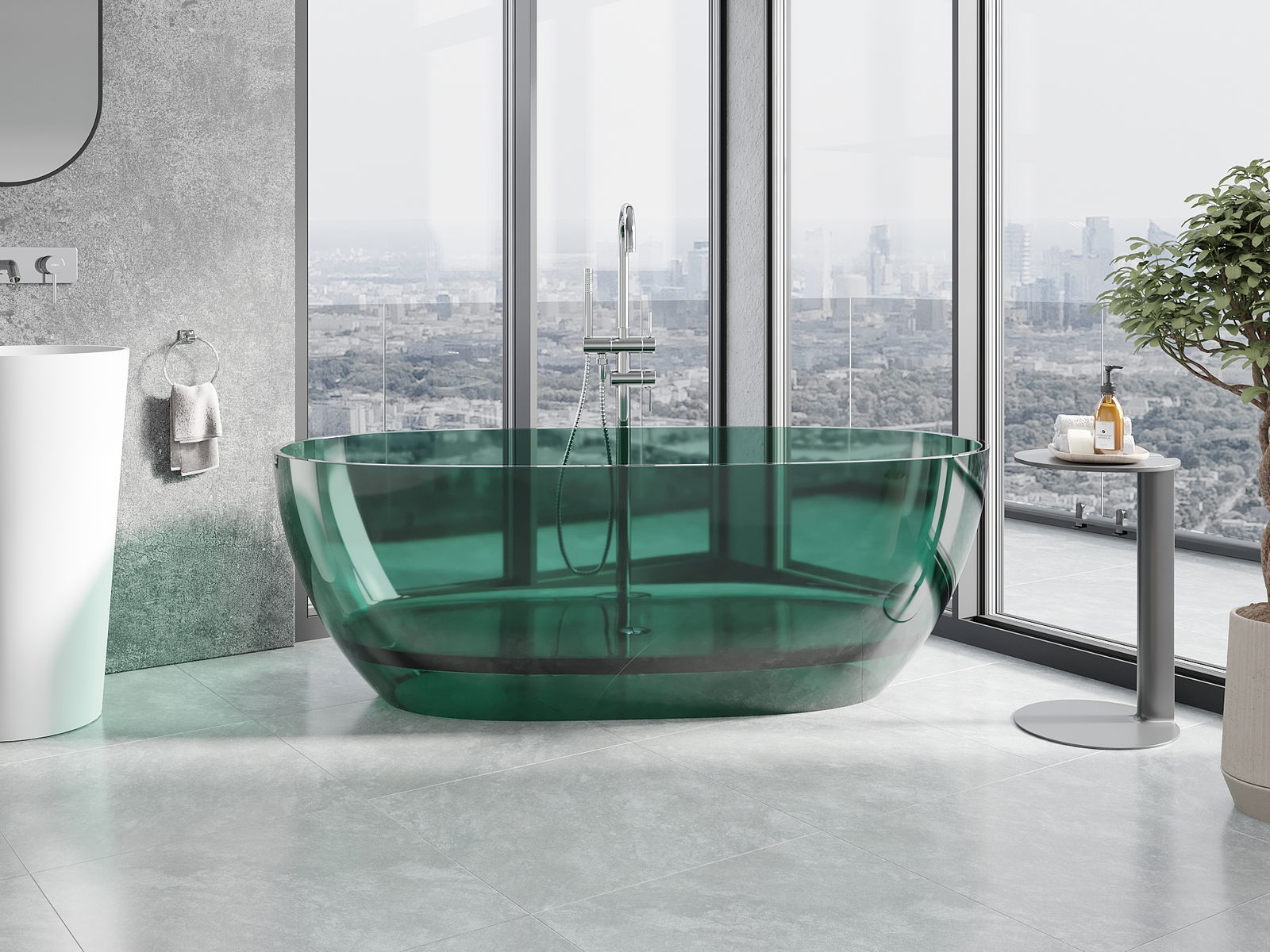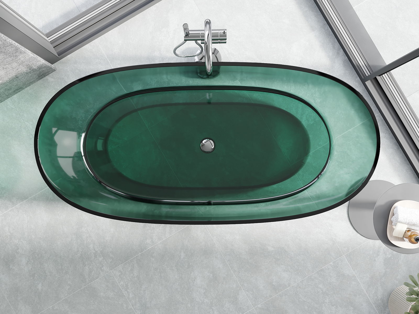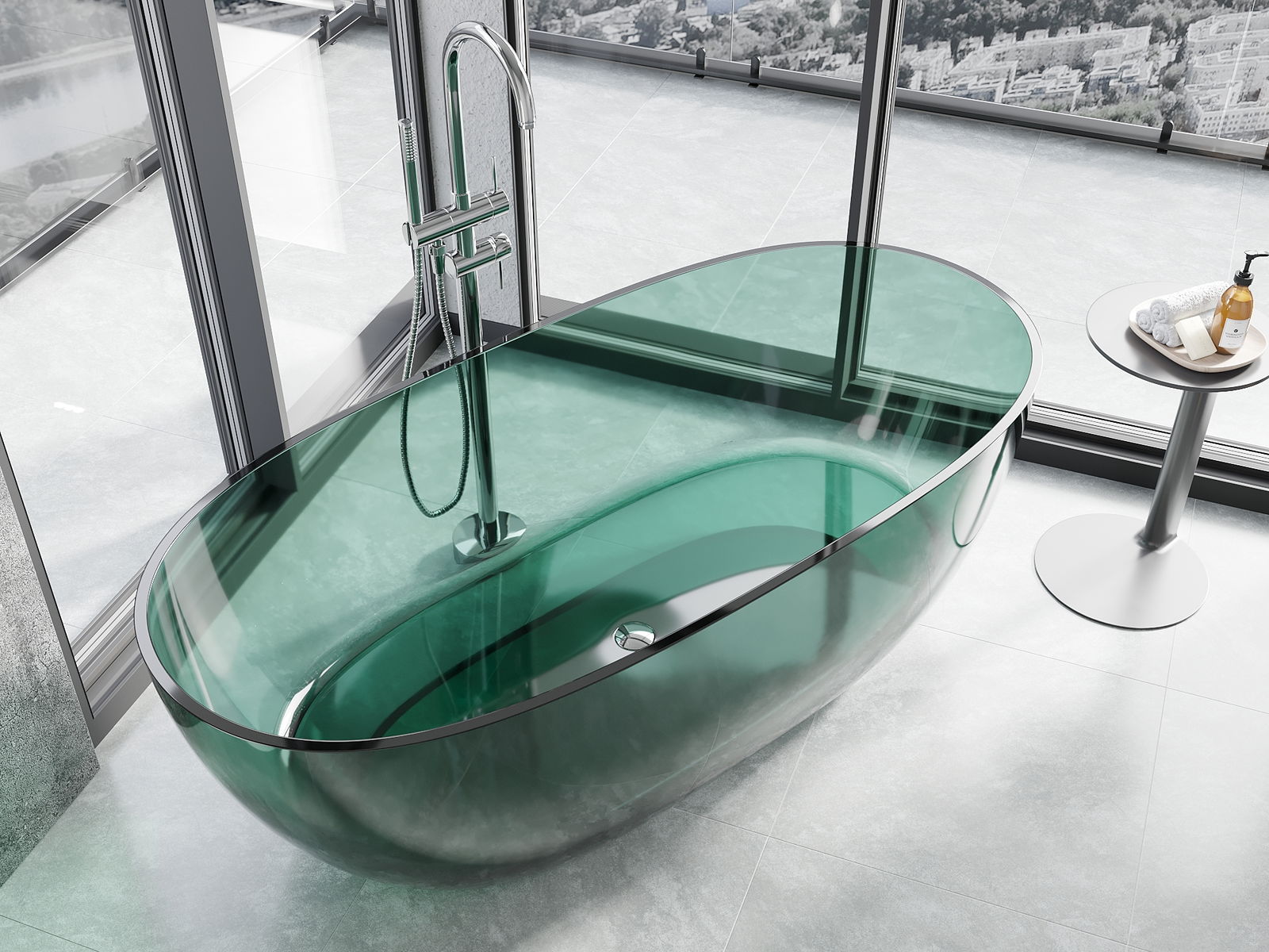 Je sodoben material, ki združuje eleganten videz z visoko trpežnostjo. Odporen je na mehanske poškodbe, enostaven za čiščenje in prijeten na dotik. Prosojna oblika in tanek rob kadi ji dasta lahkotnost in edinstven značaj, kar ustvarja učinkovit poudarek v zasnovi kopalnice.