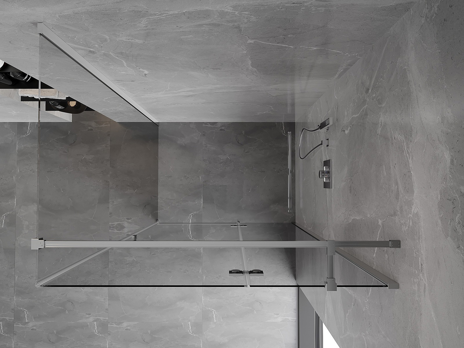 Priročen in udoben ročaj je izdelan iz trpežnega in odpornega kovine. Modna oblika v kombinaciji z zaključkom, ki ustreza barvi profilov, daje celoti sodoben in stilski videz, poudarjajoč estetiko vsake kopalnice.