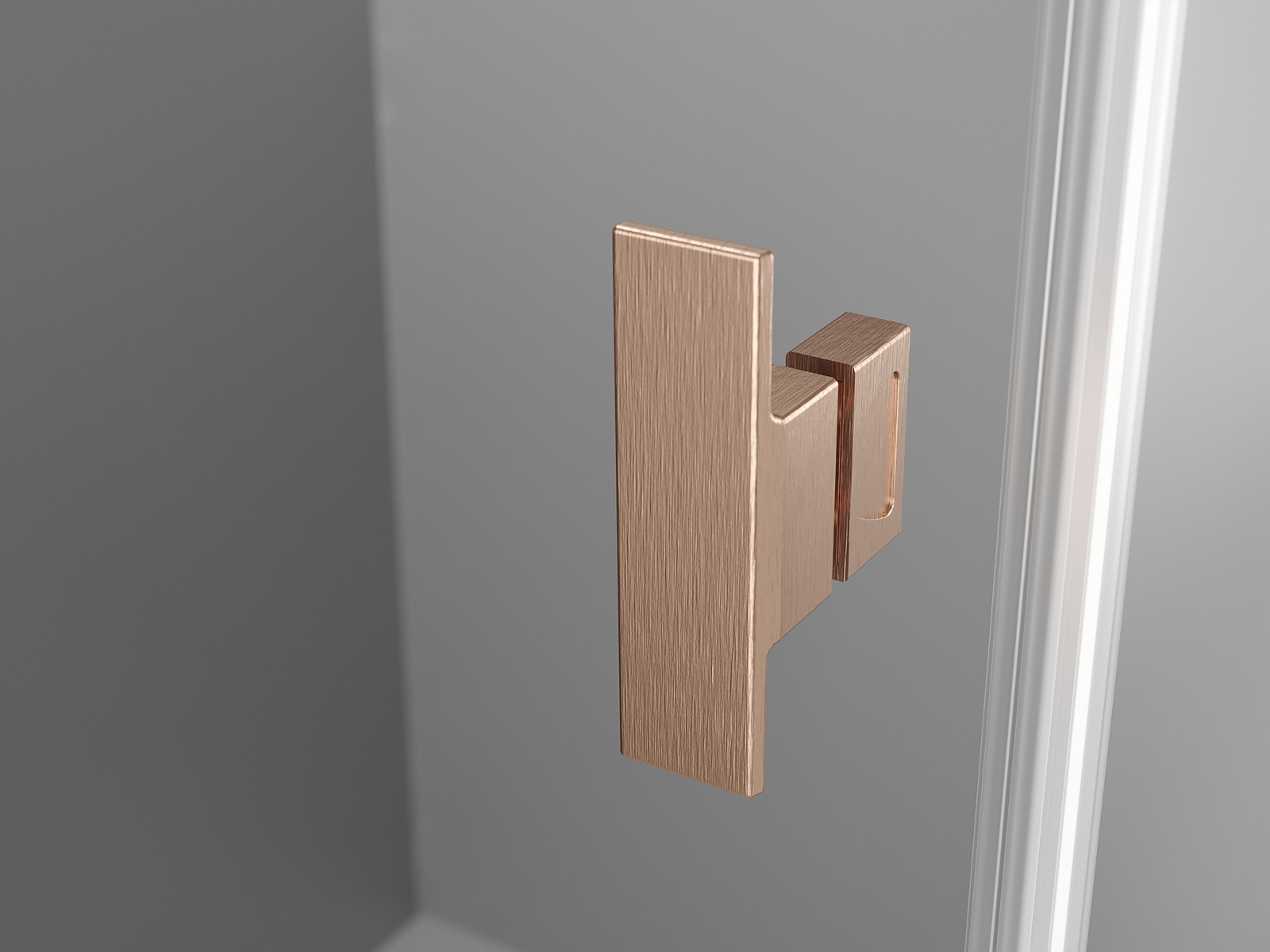 Priročen in udoben ročaj je izdelan iz trpežnega in odpornega kovine. Modna oblika v kombinaciji z zaključkom, ki ustreza barvi profilov, daje celoti sodoben in stilski videz, poudarjajoč estetiko vsake kopalnice.