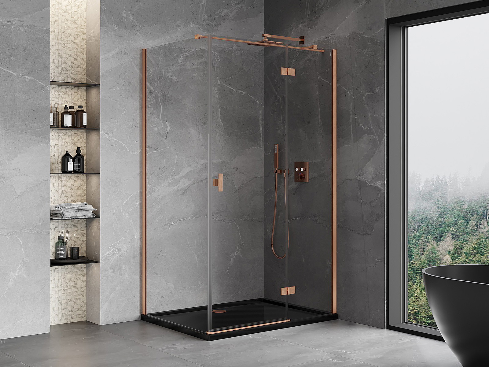 Mexen Mist-H T desna nihajna prha 110 x 85 cm, prozorna, brušeni baker - 8A5T-110-085-65-00-P