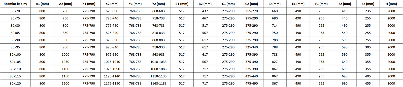 Tuš kabine, vrata in stene so standardno prilagojene za montažo na tuš kadi določenih dimenzij. Te dimenzije so navedene v imenu ali opisu izdelka. Vendar je treba upoštevati, da se dejanske mere elementov lahko nekoliko razlikujejo od nazivnih vrednosti. V primeru načrtovane montaže neposredno na tla je priporočljivo natančno preveriti zunanje mere in razporeditev elementov v skladu s tehnično risbo.