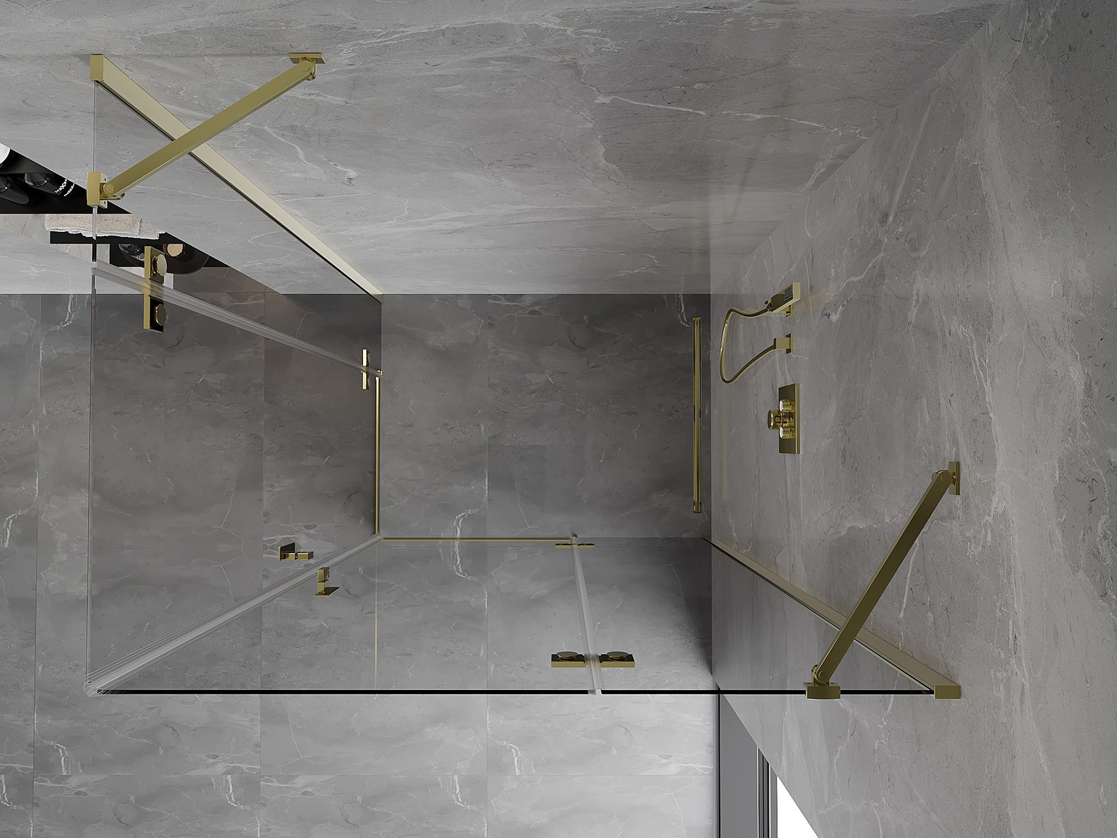 Priročen in udoben ročaj je izdelan iz trpežnega in odpornega kovine. Modna oblika v kombinaciji z zaključkom, ki ustreza barvi profilov, daje celoti sodoben in stilski videz, poudarjajoč estetiko vsake kopalnice.