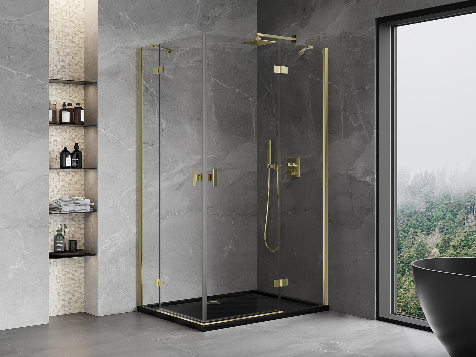 Mexen Mist-H Duo kabina za prhanje, desna, z nihajnimi vrati, 80 x 85 cm, prozorna, zlata - 8A5-080L-085P-50-00