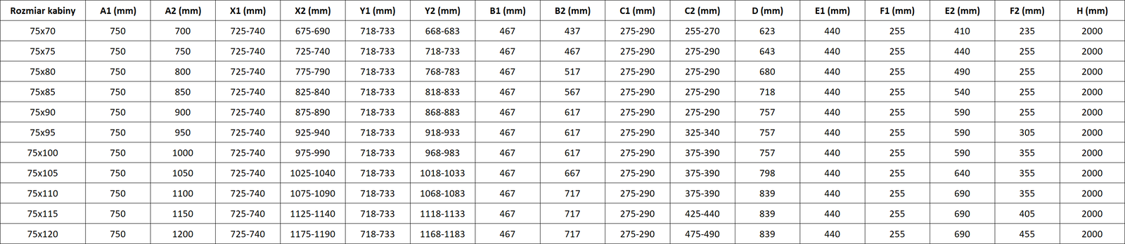 Vrata na tečaj omogočajo maksimalno svobodo med uporabo. Imajo trdne tečaje, izdelane iz trajnega materiala, ki ne povzročajo težav pri čiščenju in omogočajo lahek dostop do notranjosti kabine.