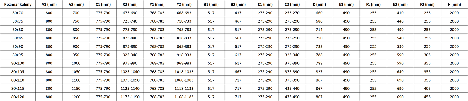 Vrata na tečaj omogočajo maksimalno svobodo med uporabo. Imajo trdne tečaje, izdelane iz trajnega materiala, ki ne povzročajo težav pri čiščenju in omogočajo lahek dostop do notranjosti kabine.
