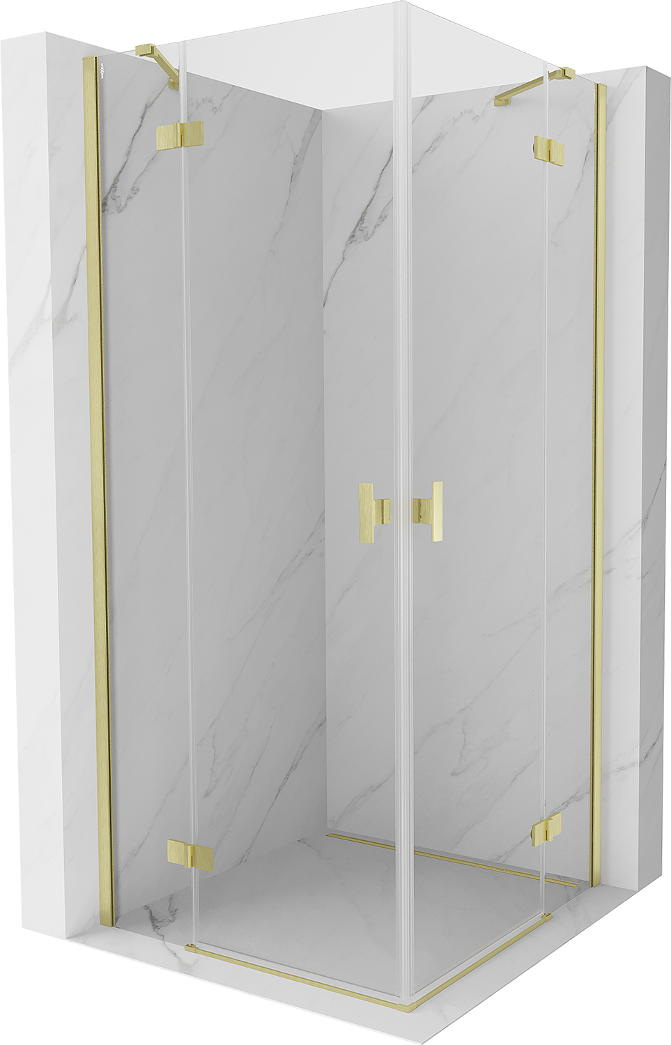 Mexen Mist-H Duo nihajna tuš kabina 85 x 85 cm, prozorna, zlata brušena - 8A5-085L-085P-55-00