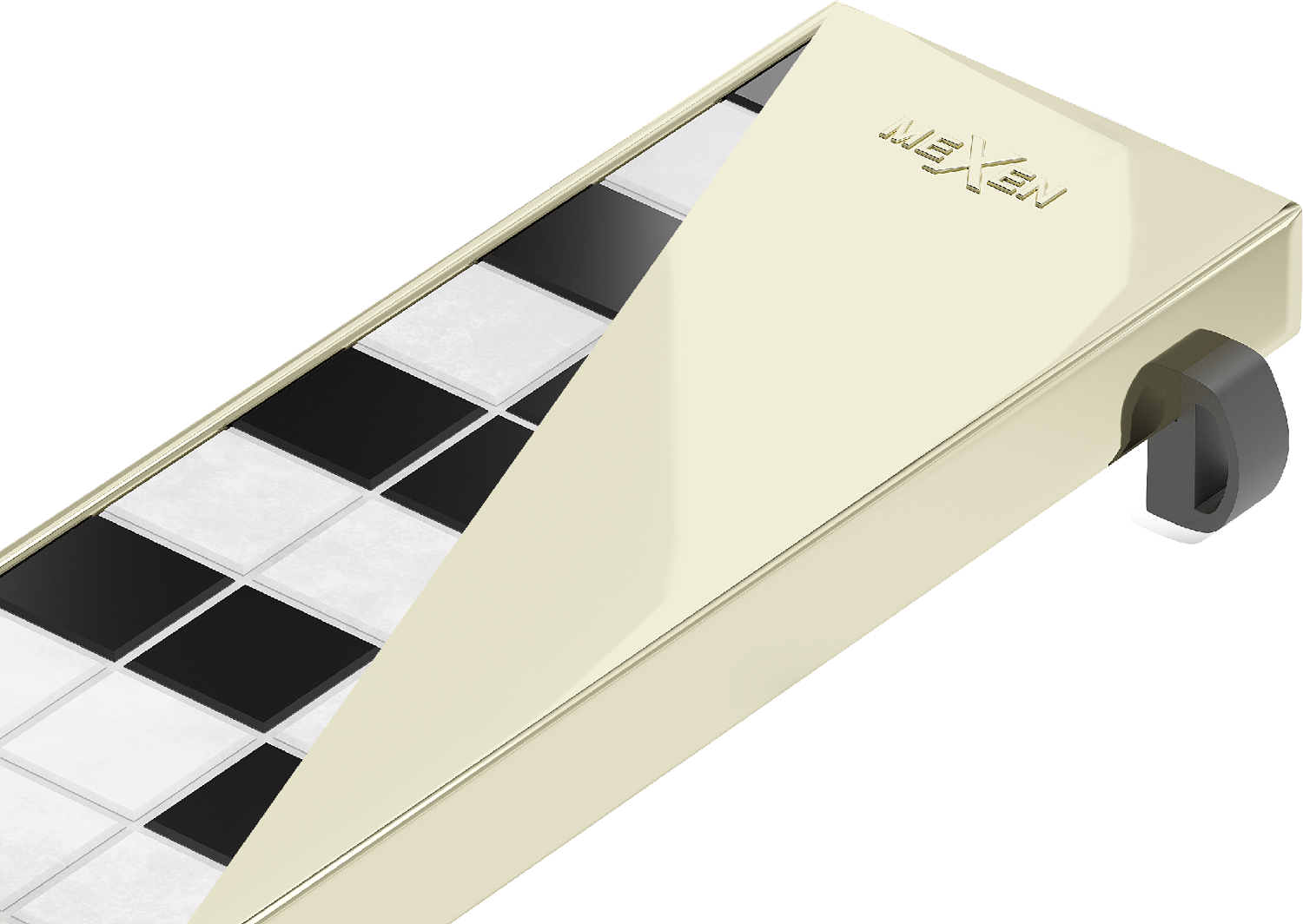 Dvostranska maska z možnostjo obračanja kadarkoli omogoča spremembo aranžmaja. Na eni strani je gladko nerjaveče jeklo, po obrnjenju pa masko lahko obložimo s ploščicami, da se ujema s tlemi.