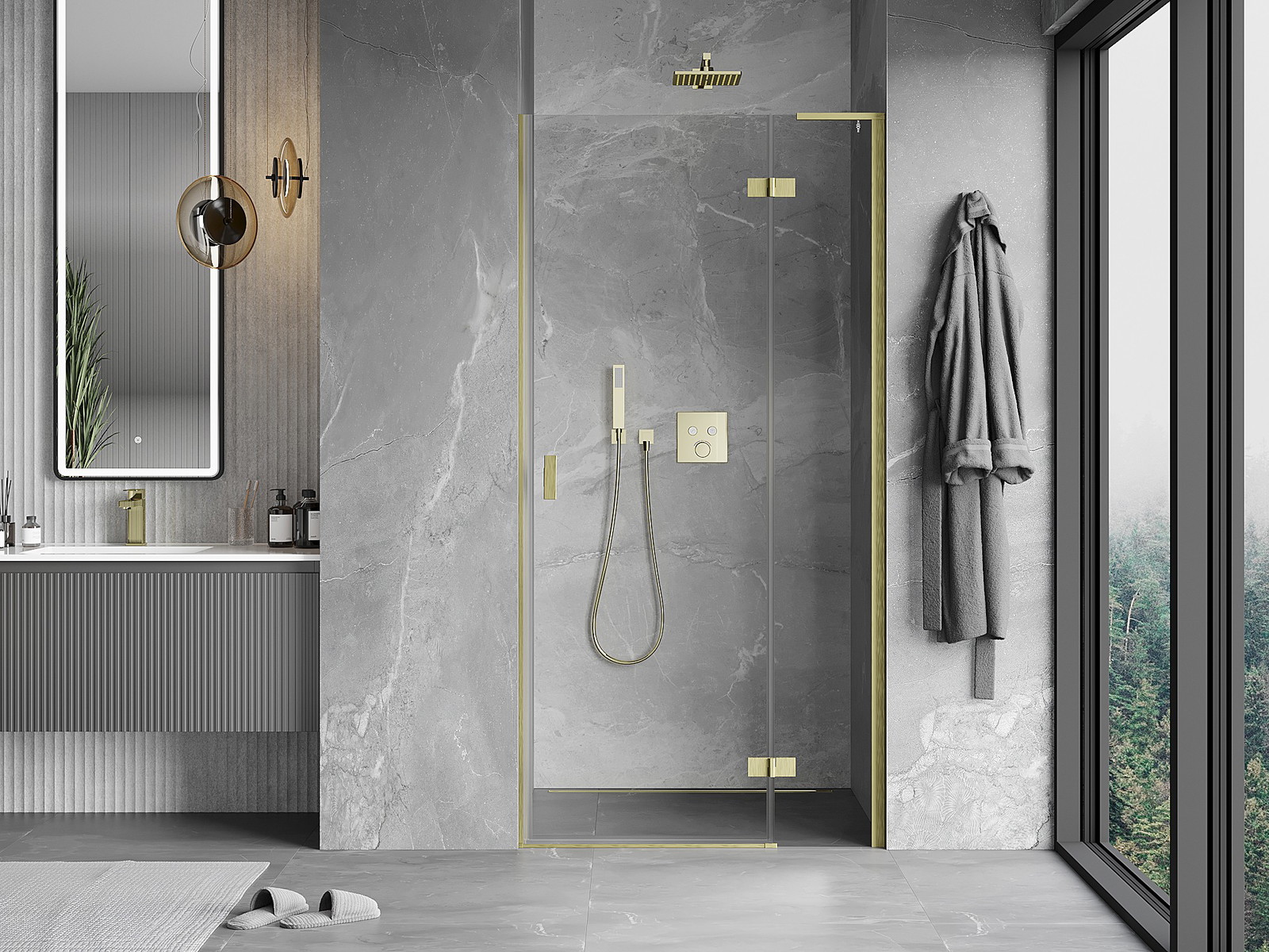 Mexen Mist-H L povratna pršna vrata desna 100 cm, prosojna, zlato brušena - 8A5L-100-000-55-00-P