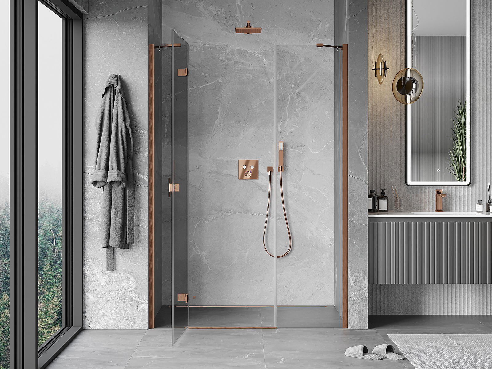 Mexen Mist-H leva nihajna tuš vrata 155 cm, prosojna, brušen baker - 8A5-155-001-65-00-L