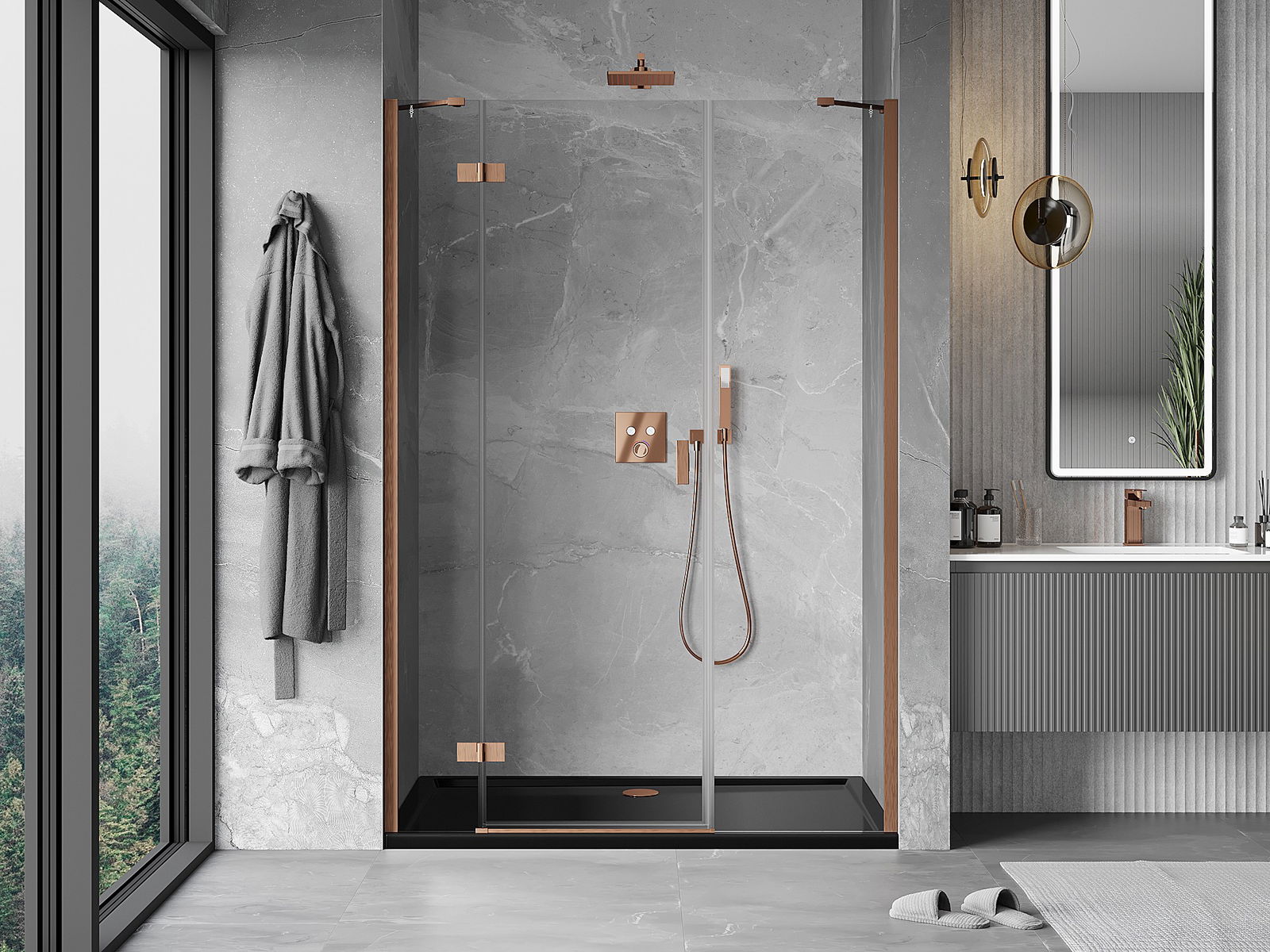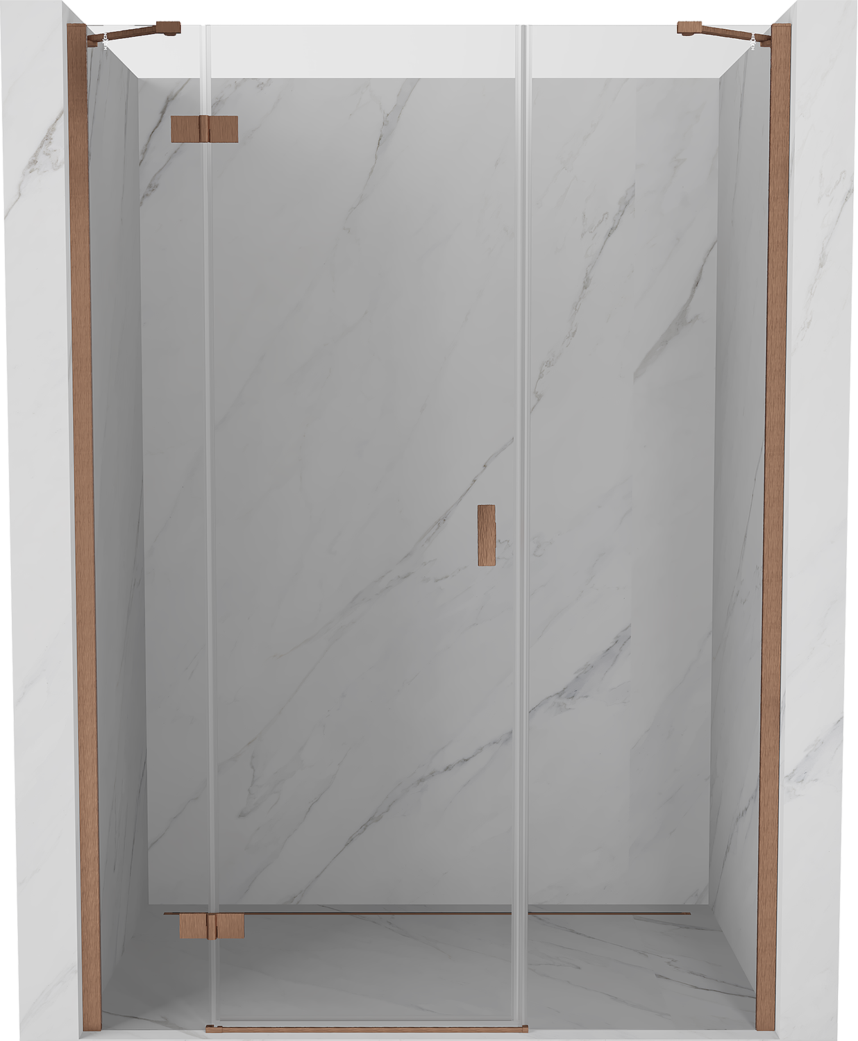 Mexen Mist-H leva nihajna pršna vrata 160 cm, prozorna, brušen baker - 8A5-160-001-65-00-L