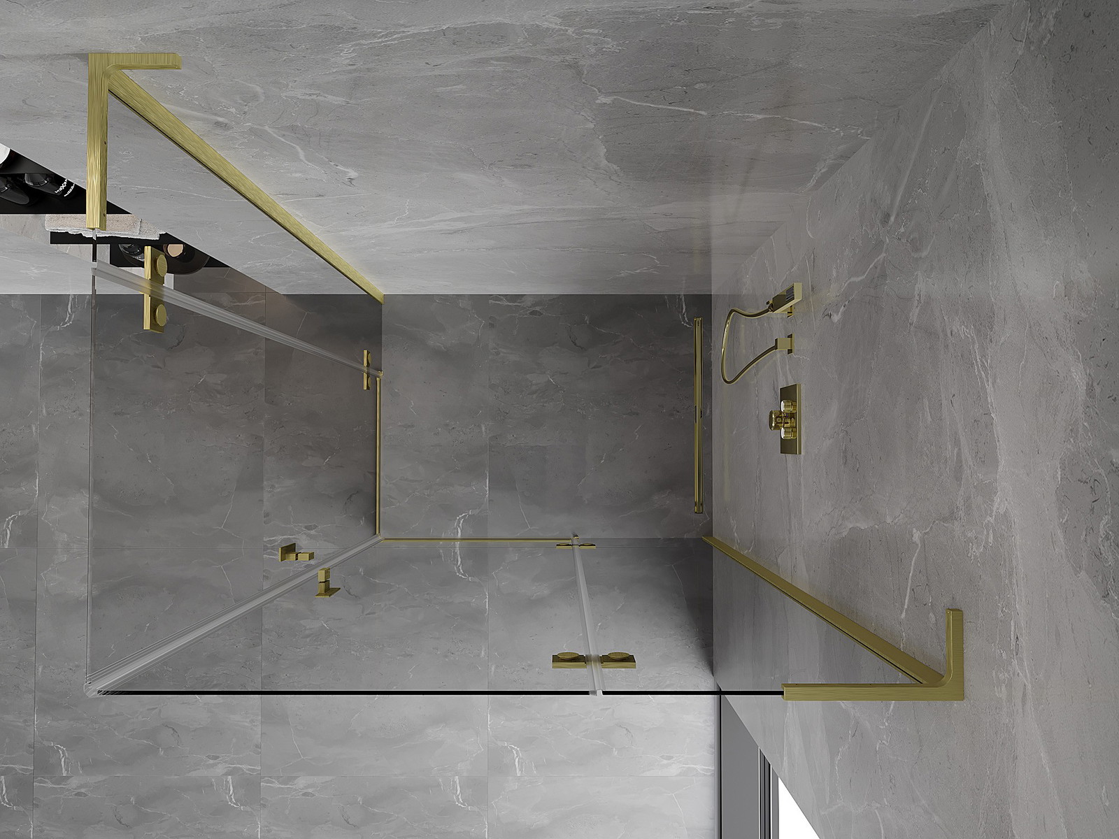 Priročen in udoben ročaj je izdelan iz trpežnega in odpornega kovine. Modna oblika v kombinaciji z zaključkom, ki ustreza barvi profilov, daje celoti sodoben in stilski videz, poudarjajoč estetiko vsake kopalnice.