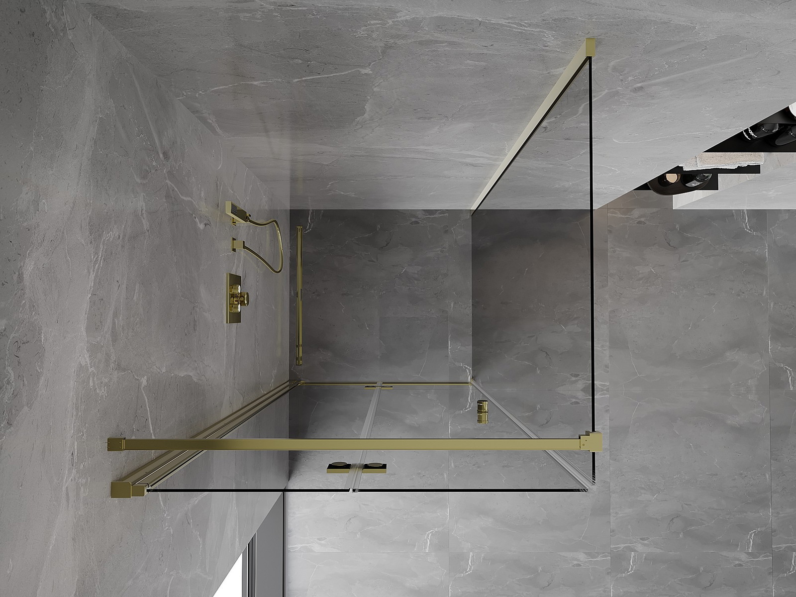 Priročen in udoben ročaj je izdelan iz trpežnega in odpornega kovine. Modna oblika v kombinaciji z zaključkom, ki ustreza barvi profilov, daje celoti sodoben in stilski videz, poudarjajoč estetiko vsake kopalnice.