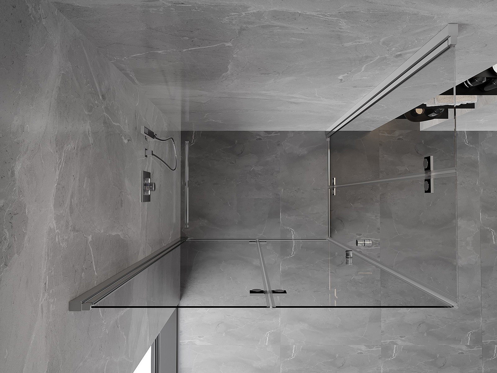 Priročen in udoben ročaj je izdelan iz trpežnega in odpornega kovine. Modna oblika v kombinaciji z zaključkom, ki ustreza barvi profilov, daje celoti sodoben in stilski videz, poudarjajoč estetiko vsake kopalnice.