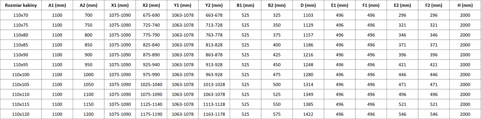 Tuš kabine, vrata in stene so standardno prilagojene za montažo na tuš kadi določenih dimenzij. Te dimenzije so navedene v imenu ali opisu izdelka. Vendar je treba upoštevati, da se dejanske mere elementov lahko nekoliko razlikujejo od nazivnih vrednosti. V primeru načrtovane montaže neposredno na tla je priporočljivo natančno preveriti zunanje mere in razporeditev elementov v skladu s tehnično risbo.