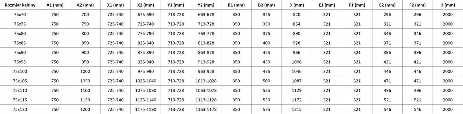 Tuš kabine, vrata in stene so standardno prilagojene za montažo na tuš kadi določenih dimenzij. Te dimenzije so navedene v imenu ali opisu izdelka. Vendar je treba upoštevati, da se dejanske mere elementov lahko nekoliko razlikujejo od nazivnih vrednosti. V primeru načrtovane montaže neposredno na tla je priporočljivo natančno preveriti zunanje mere in razporeditev elementov v skladu s tehnično risbo.