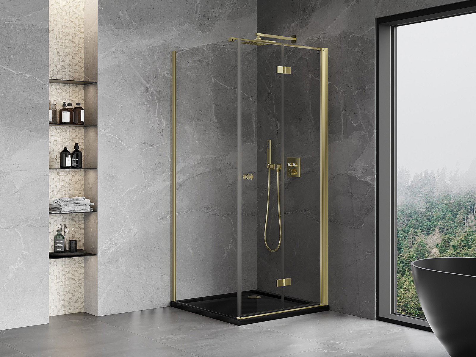 Priročen in udoben ročaj je izdelan iz trpežnega in odpornega kovine. Modna oblika v kombinaciji z zaključkom, ki ustreza barvi profilov, daje celoti sodoben in stilski videz, poudarjajoč estetiko vsake kopalnice.