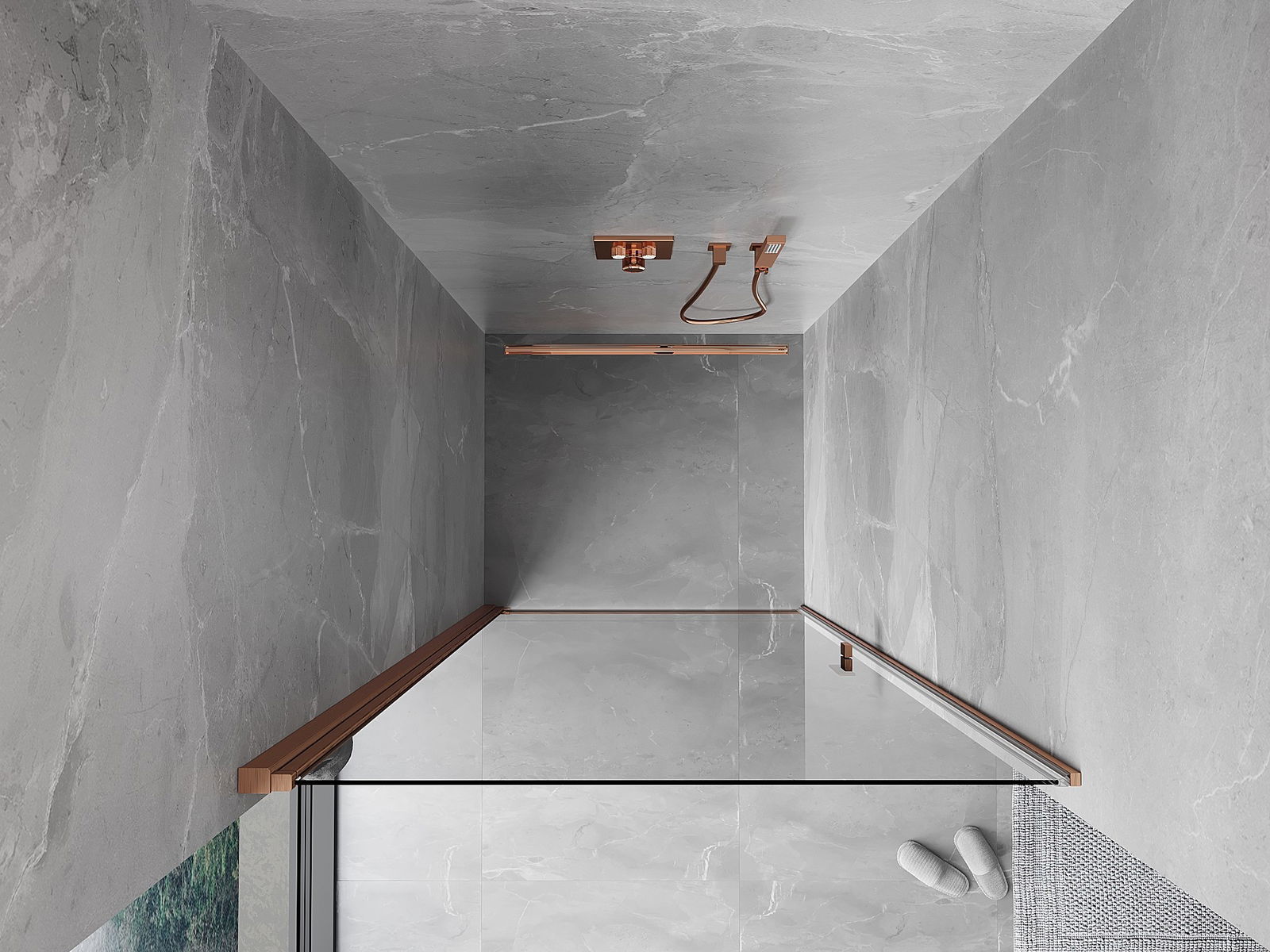 Mexen Mist-B Nagibna tuš vrata 60 cm, prozorna, brušeni baker - 8A2-060-000-65-00