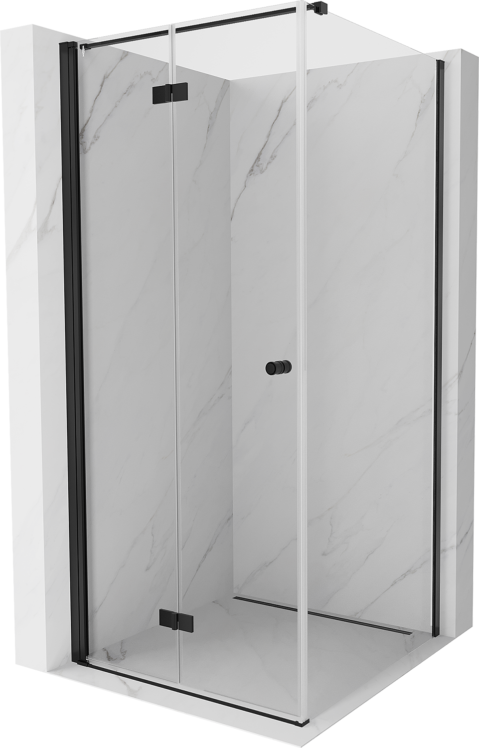 Mexen Mist-F Zložljiva tuš kabina leva 75 x 75 cm, prozorna, črna - 8A6T-075-075-70-00-L